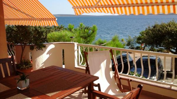House 10 meters from the sea, beach in front of the house. Each apartment 45m2, terrace 12m2, balcony 4m2, all with direct view of the sea and islands. Parking provided, grill in the yard, water excellent for drinking. The sea is clean, the beaches are beautifully arranged. Mandre is dedicated to family tourism.