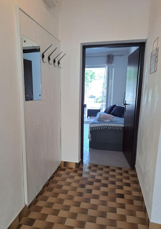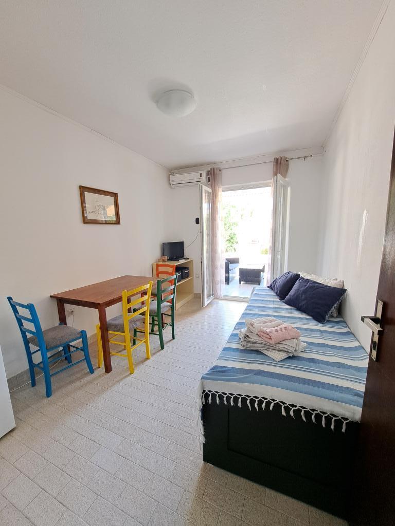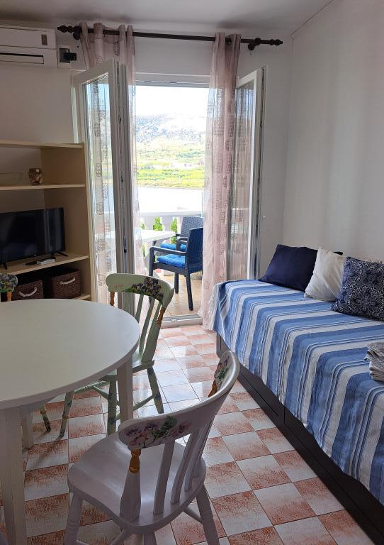 The apartment is located on the island of Pag, in the quiet and peaceful Ljubačka Street 7, within a family house. It consists of a bedroom, living room, bathroom, kitchen and hallway. The living room has a pull-out bed (when unfolded, it is the size of a double bed 160x200). Free parking is in front of the house. The center of Pag and the public city beach Prosika are very close (about 900 m or a 10-minute walk), while two small beaches are 100 m from the house.