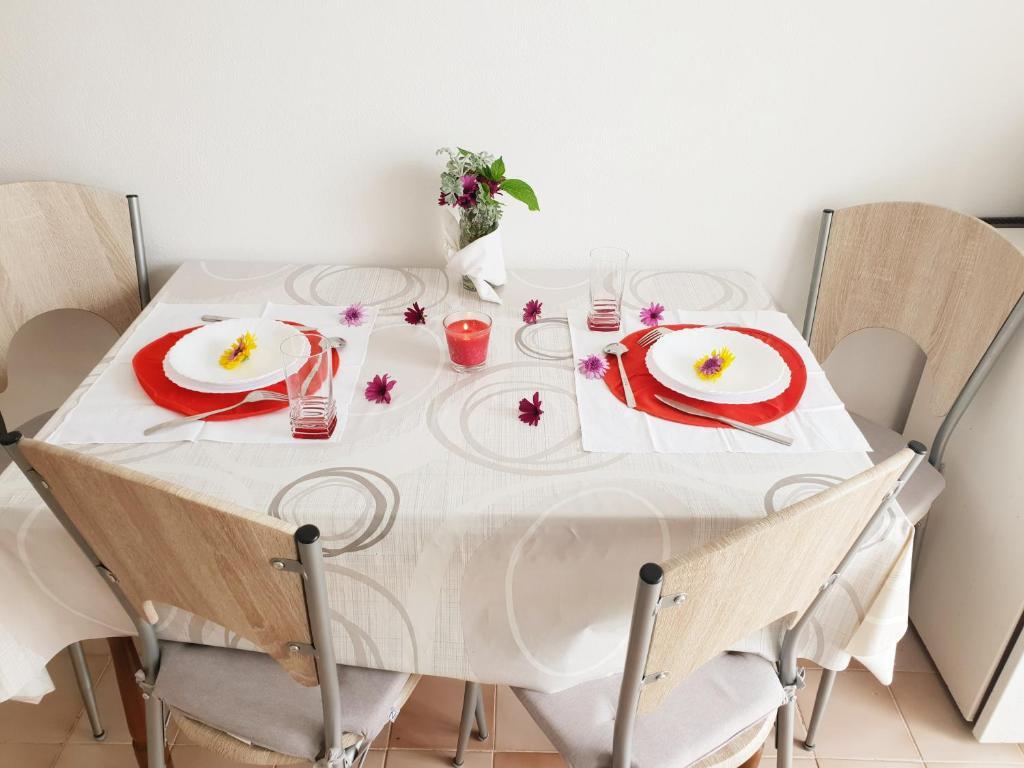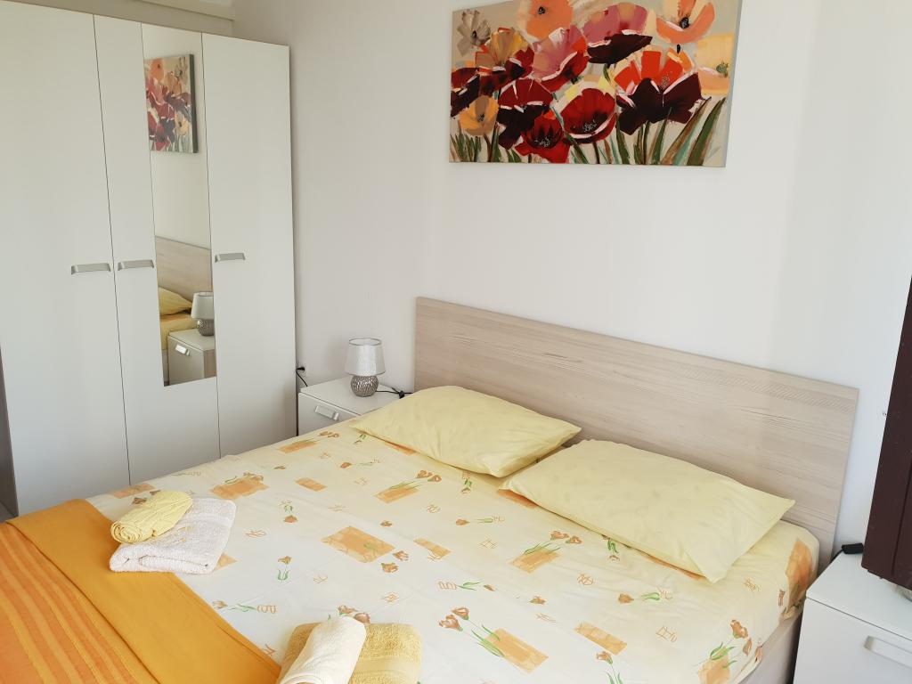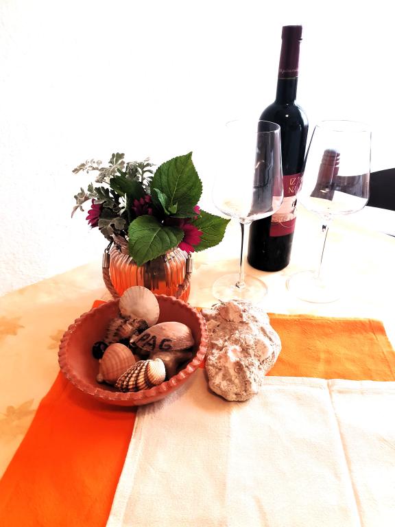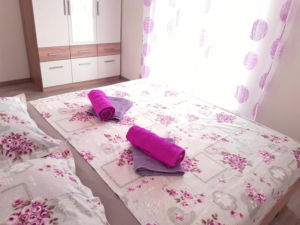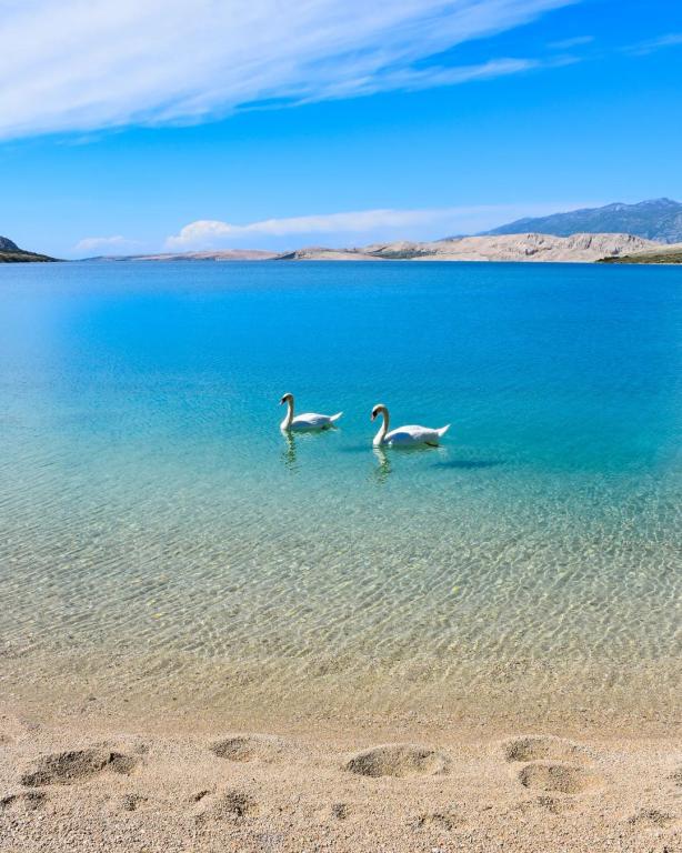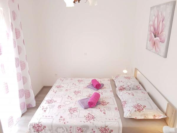 The apartment was clean and seems same as in the pictures with full equipment. The old lady, is very friendly, she cooked us pancake ( filled with Nutella and jam ) in the middle of our vacation. We have 2 dogs and had a lot of questions. The lady's son answered quickly and we could solve everything. The weather was great, the sea is just 5 minutes from the apartment. What else do you need more? We enjoyed it, and totally recommend for everybody to reserve a flat here. Visit Pag, because it is beautiful, I love it. Best Regards, Norbert from Hungary
