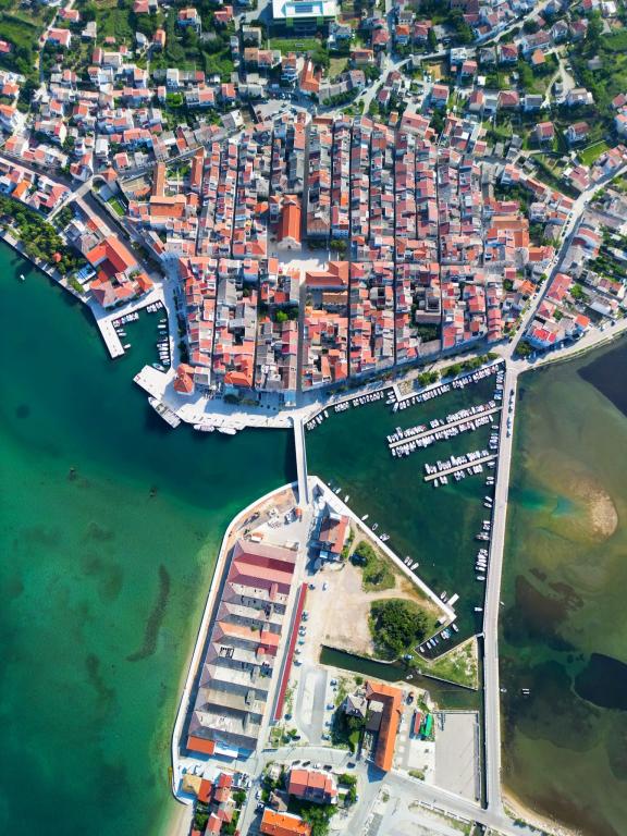 Apartments Maestral Fabijanić, first row to the sea with three beaches within a radius of 50 - 150 m. Located in a quiet part of Pag, approximately 2 km from the city center. Accommodation in our facility (525m2 garden and 1000m2 parking) consists of modern and well-equipped apartments designed to provide maximum comfort and practicality. Each apartment is tastefully decorated, comfortable furniture and a number of amenities that ensure a pleasant stay. Whether you are traveling with family, friends or as a couple, we have the perfect apartment that will meet your needs. Our apartments are spacious and include amenities such as air conditioning, Led TV with satellite programs with free WIFI (50 Mbit), fully equipped kitchens and private bathrooms. The apartments have large terraces with a beautiful view of the Adriatic Sea, the town of Pag, the Velebit mountain, allowing you to wake up to the soothing sound of the waves and enjoy picturesque sunsets from the comfort of your own balcony or terrace. We are looking forward to your arrival!
