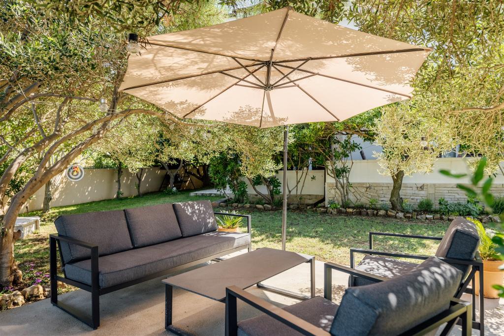 The mGarden apartment house is located in the century-old town of Pag, near the sea and a 15-minute walk from the city center, yet far enough for complete peace and privacy. From the front of the house, there is a fabulous view of the sea and the white rocks of Pag exposed by the storm, and from the back, the view captivates a high rocky hill sprinkled with sparse Pag vegetation. The newly renovated apartments are equipped with everything necessary for a pleasant vacation. The apartment house can host up to 20 people in 4 apartments. The large and hidden courtyard invites you to rest under the olive trees, with the smells of the barbecue, while special care is devoted to activities for the youngest guests. Welcome!