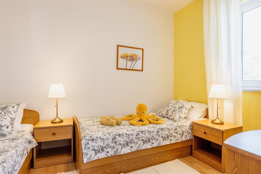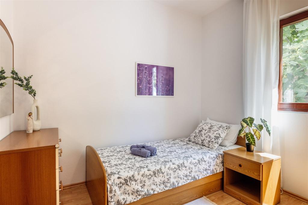 I came on vacation to Lavanda with my children immediately after the funeral of my beloved wife... I have been on vacation more than 50 times, at the sea, in various places and in different accommodations, but in such a beautiful, orderly and peaceful place, with a large yard (where you don't have to think about whether there will be a place to park, and whether someone will damage your car), where you don't have to think that your children will run away into the street, because they won't even want to run away from this landscaped and fenced yard, full of toys, far from the hustle and bustle and noise. Here you do not collide with other guests on the stairs and in the corridors (each apartment has separate entrances and terraces). Wake up to the sounds of nature, not traffic or neighbors. You have everything you need to cook and enjoy. In one word, the owner is wonderful. Hearty, bright, warm, caring, helpful, ready to do everything to make you feel like your favorite guests. They will welcome you with delicious cake and refreshments, and send you off with a nice special gift. Make sure you don't miss anything during your vacation. And all this with an ever-present, sincere smile. She spoiled us. If we could be rested and comforted anywhere, it would be right here, in "mGarden".