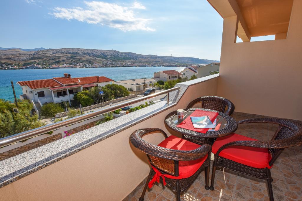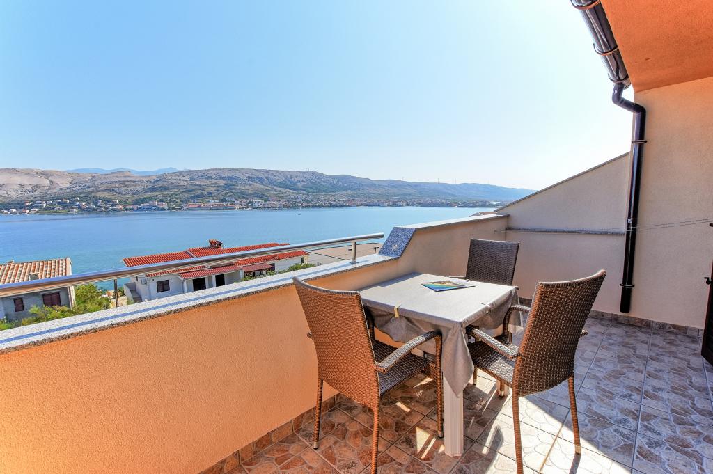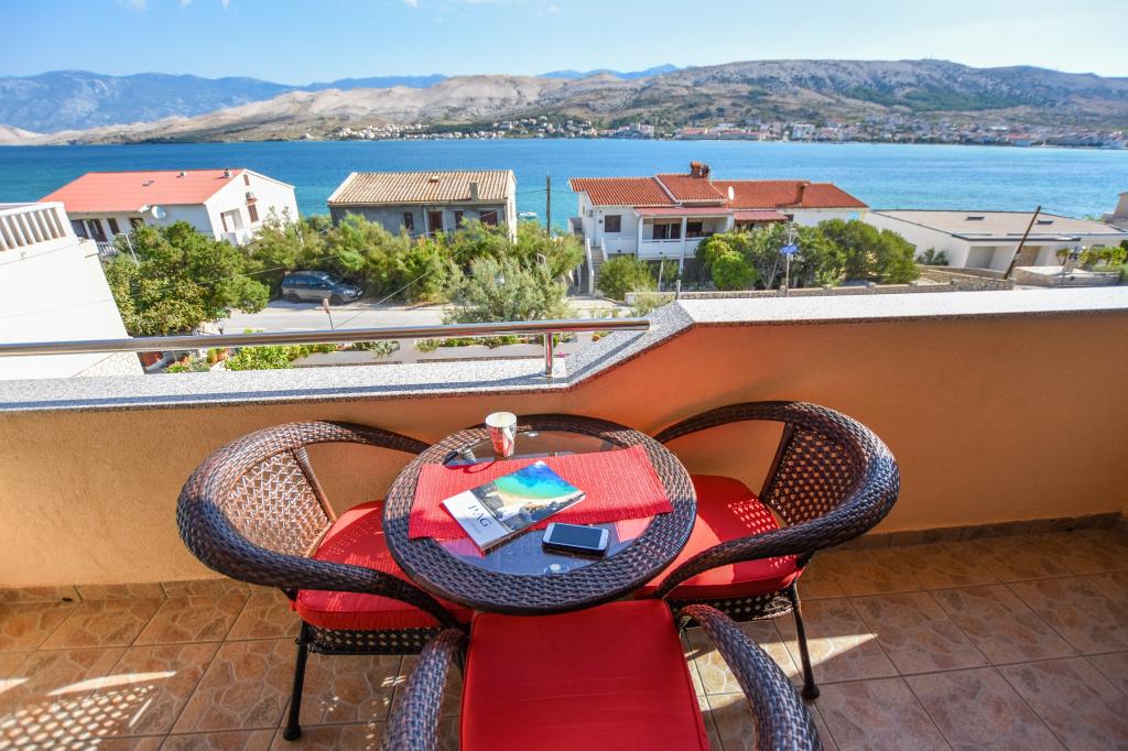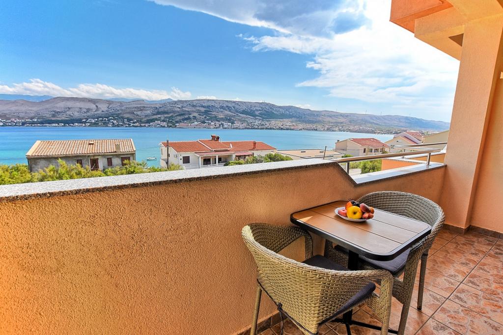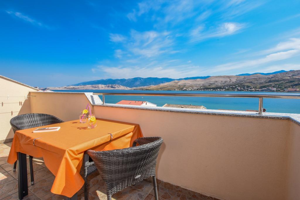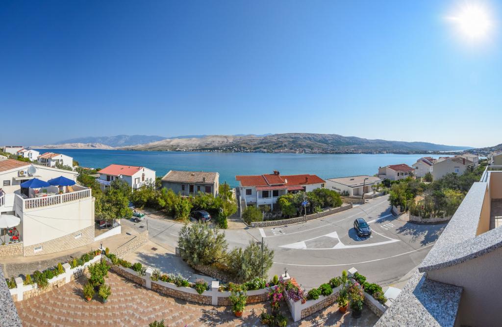 I would recommend quarters and the person owner. No problems, no surprises. We stayed in a room at the top with temperatures 36-39 degrees Celsius in the shade - air conditioning - no problems with the hot weather. Great view from the terraces over the bay, the beach and the mountains of both the city and the island of Pag and the coastal mountain range. The restaurant fully equipped - as in the descriptions. I ordered the owner add that at the base of the house from the street is a grocery store - an absolute revelation. The road to the shop with the full range of grocery - chemical lasted 15-20 seconds. The owner is fluent in English or Croatian, which for us is understandable to a degree that provides free conversation on any topic. The town of Pag provides entertainment during the day and evening. Almost daily walks with her two children have never been boring. For those who want to party until the morning of Pag nor indifferent. Once again, I recommend.