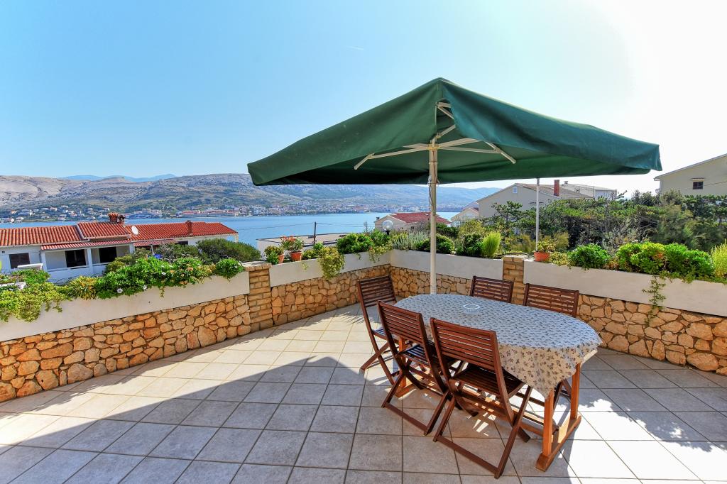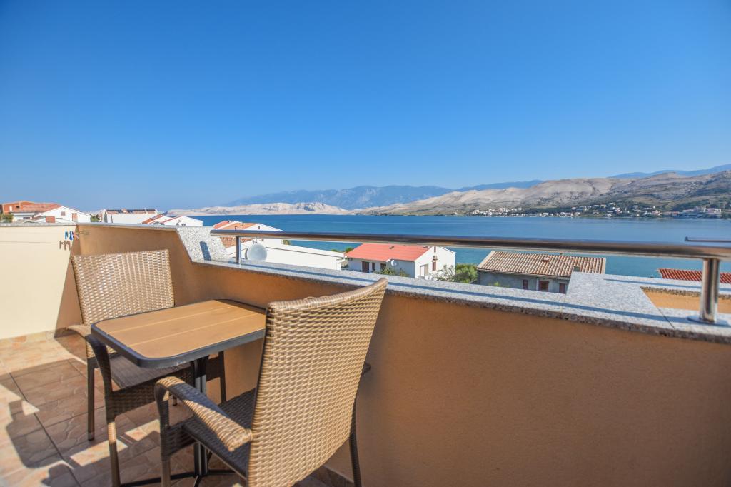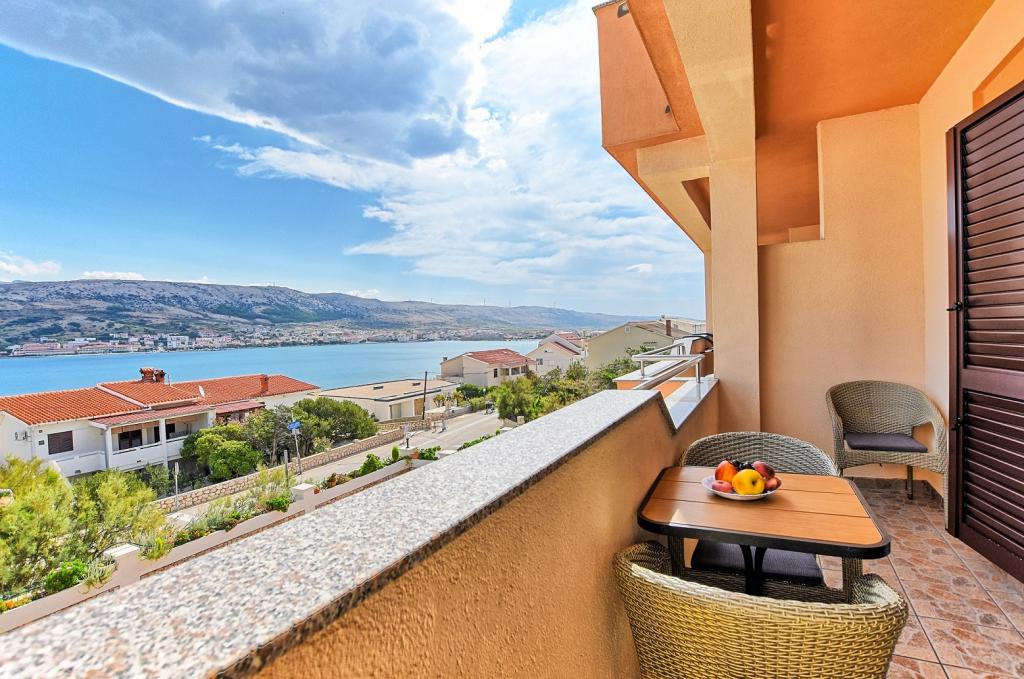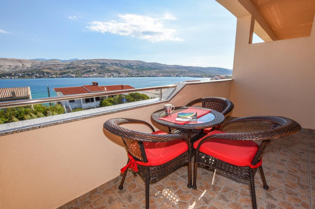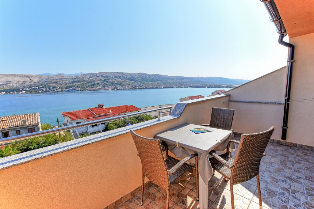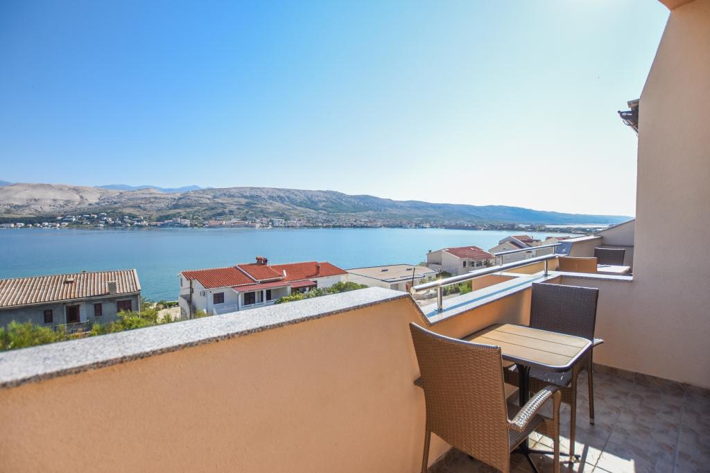 I would recommend quarters and the person owner. No problems, no surprises. We stayed in a room at the top with temperatures 36-39 degrees Celsius in the shade - air conditioning - no problems with the hot weather. Great view from the terraces over the bay, the beach and the mountains of both the city and the island of Pag and the coastal mountain range. The restaurant fully equipped - as in the descriptions. I ordered the owner add that at the base of the house from the street is a grocery store - an absolute revelation. The road to the shop with the full range of grocery - chemical lasted 15-20 seconds. The owner is fluent in English or Croatian, which for us is understandable to a degree that provides free conversation on any topic. The town of Pag provides entertainment during the day and evening. Almost daily walks with her two children have never been boring. For those who want to party until the morning of Pag nor indifferent. Once again, I recommend.