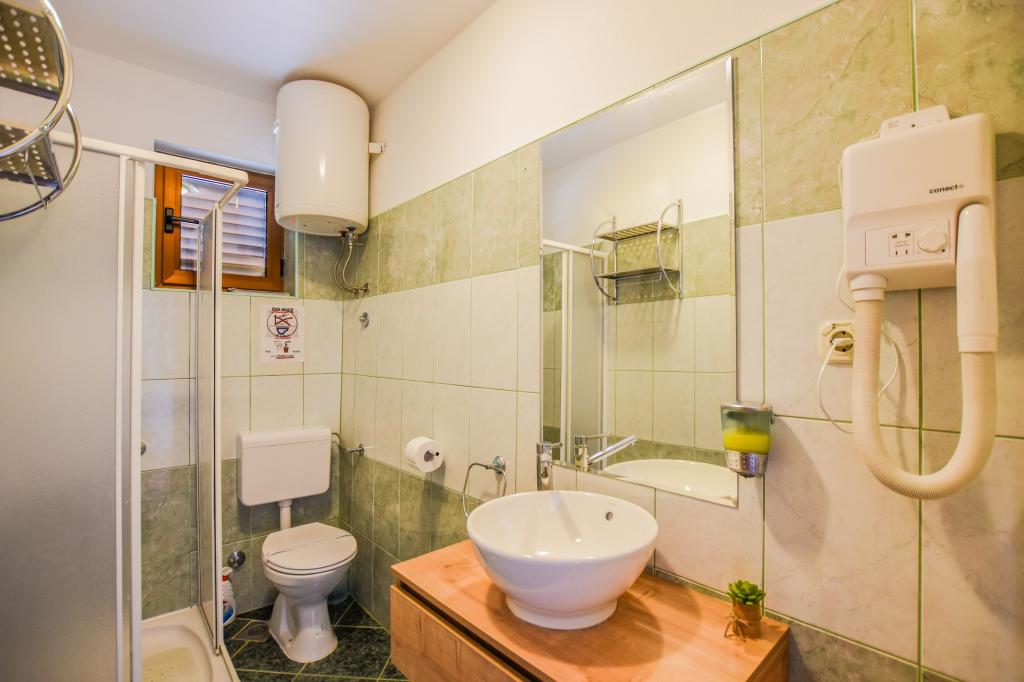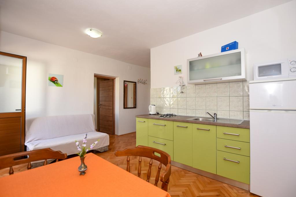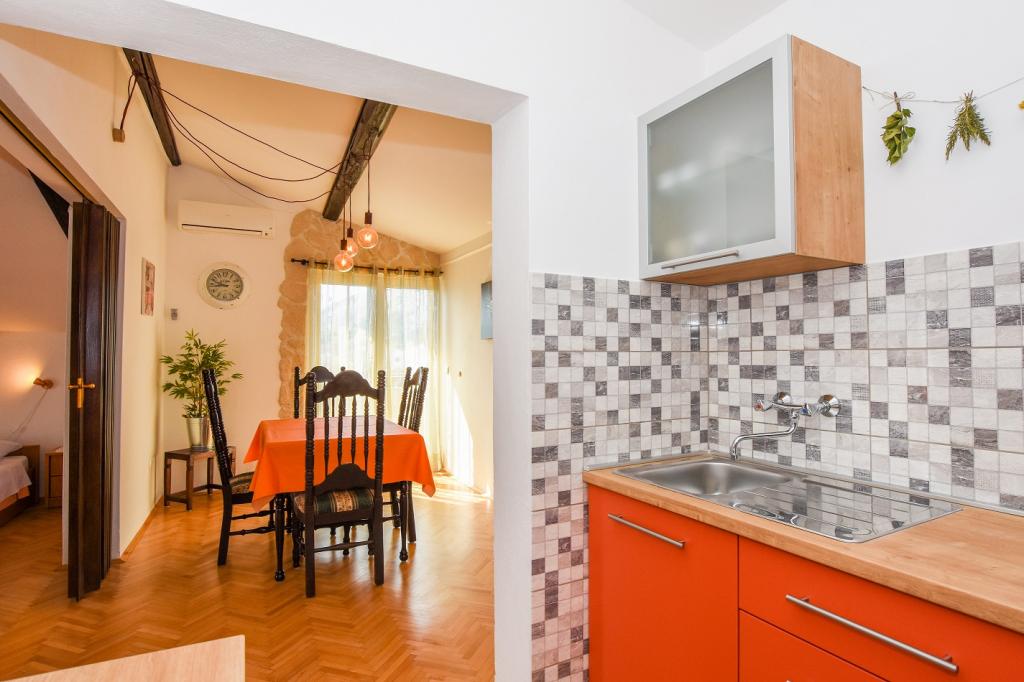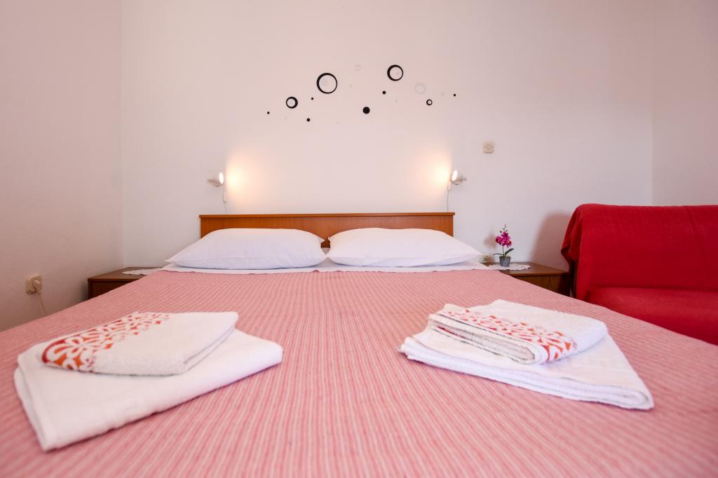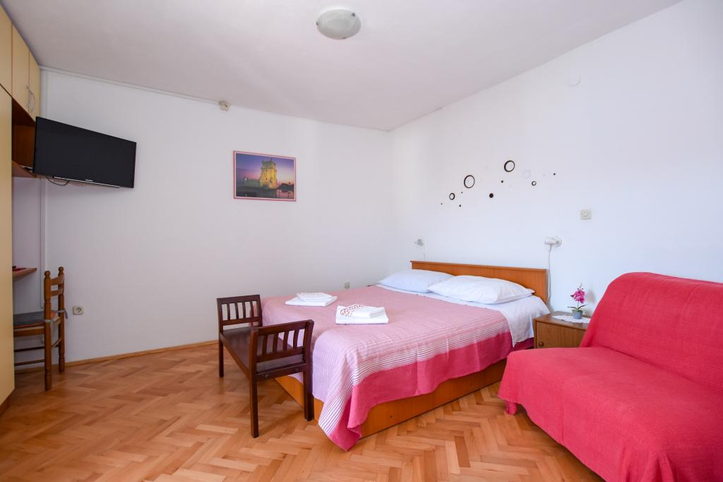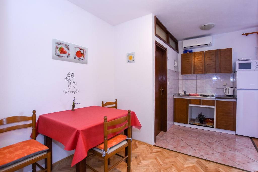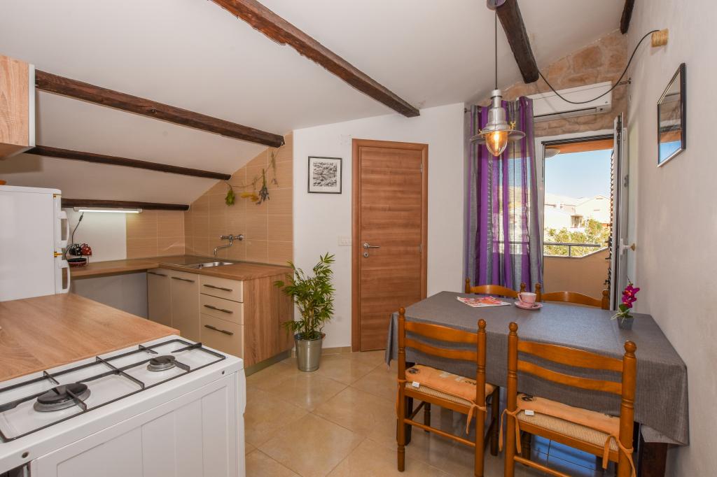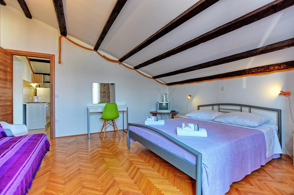 Very nice, friendly, helpful owners. Very good contact. Room - clean, well maintained, large, very well equipped (fridge, gas plate, dishes, cutlery, pots, hairdryer, beach umbrella, welcome clean scented linen and towels). Beautiful view from the terrace and balconies. Guaranteed parking space about 100 m from Near the small beach house. Beautiful, charming little town. This area has many places to explore. Both we and the children were very happy and delighted with Croatia. We recommend!
