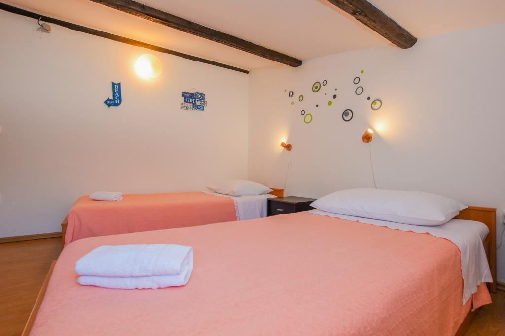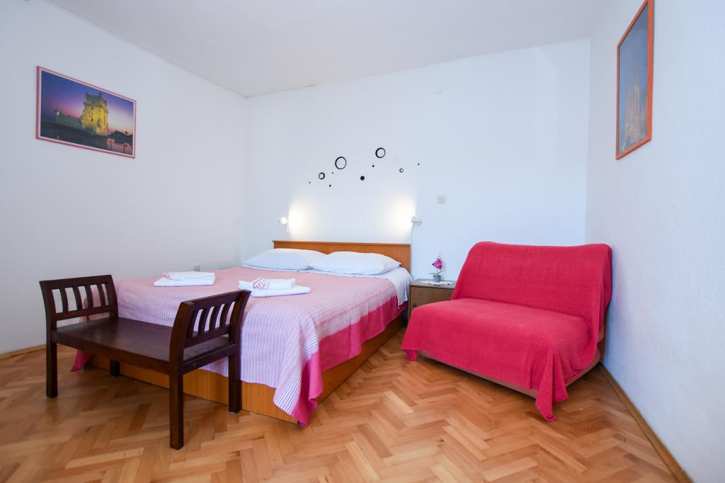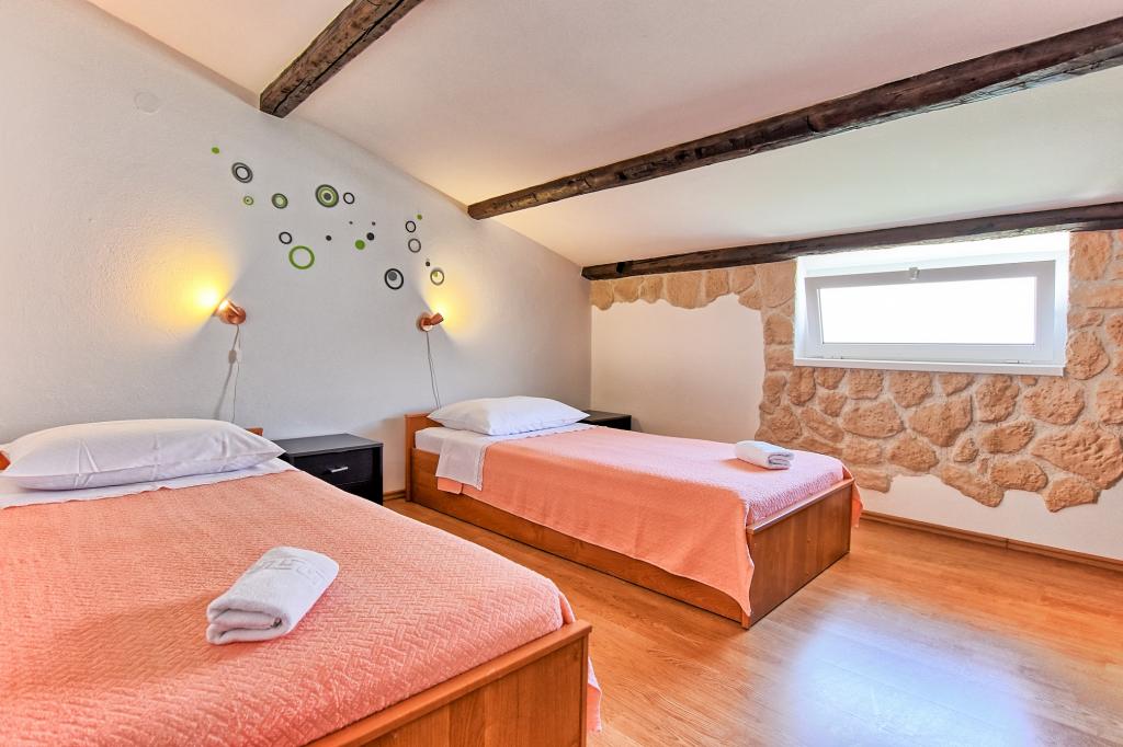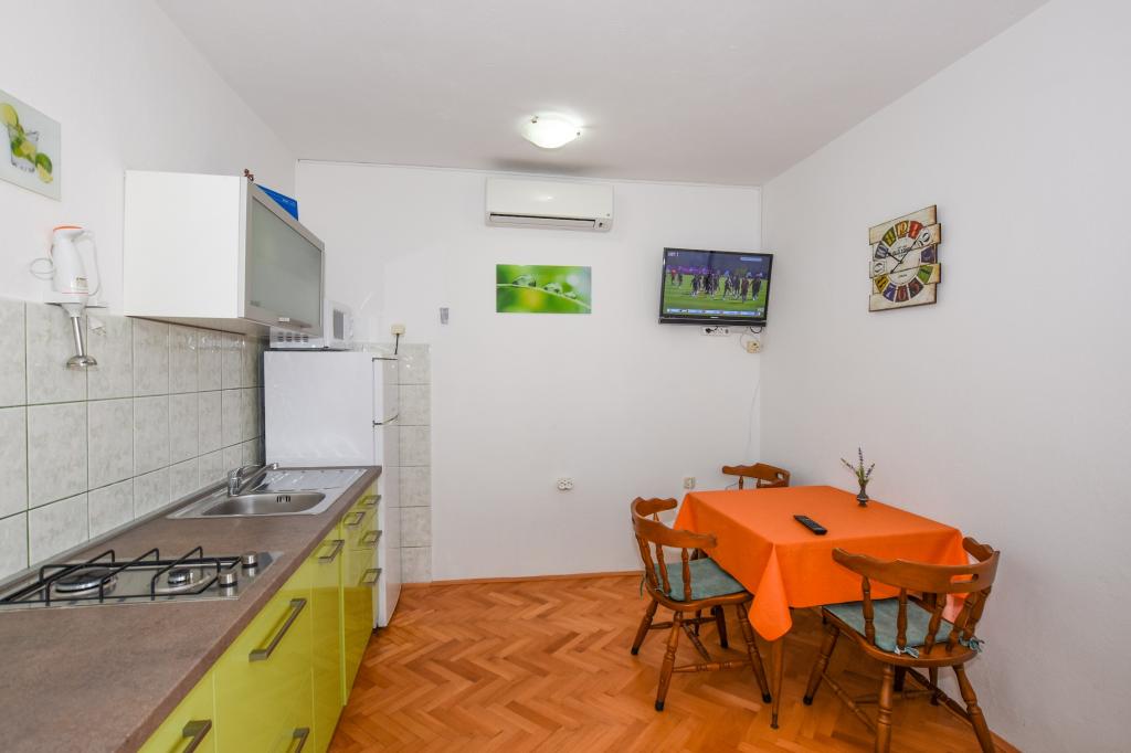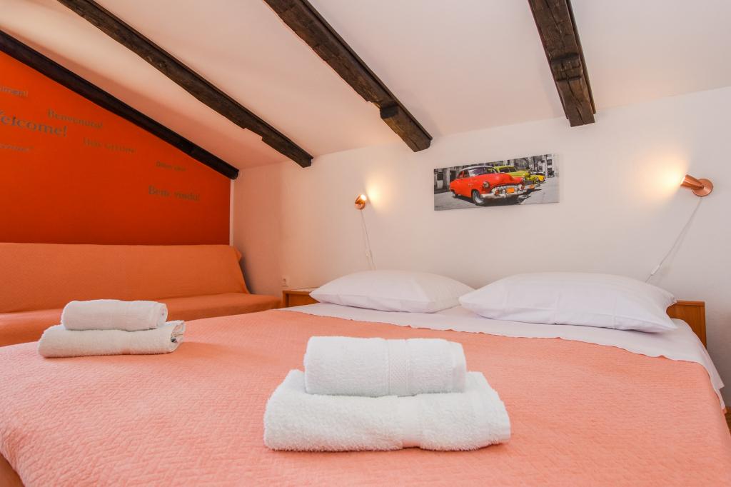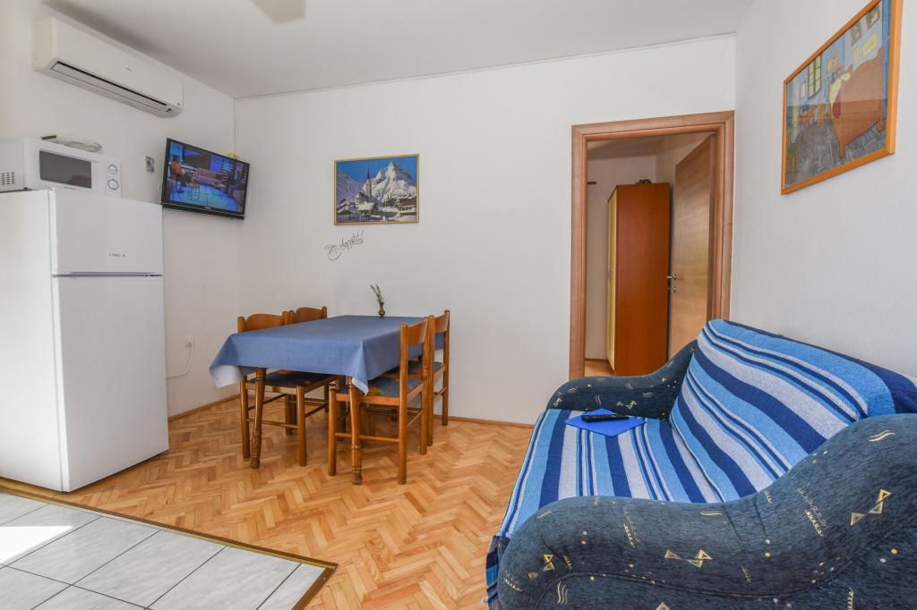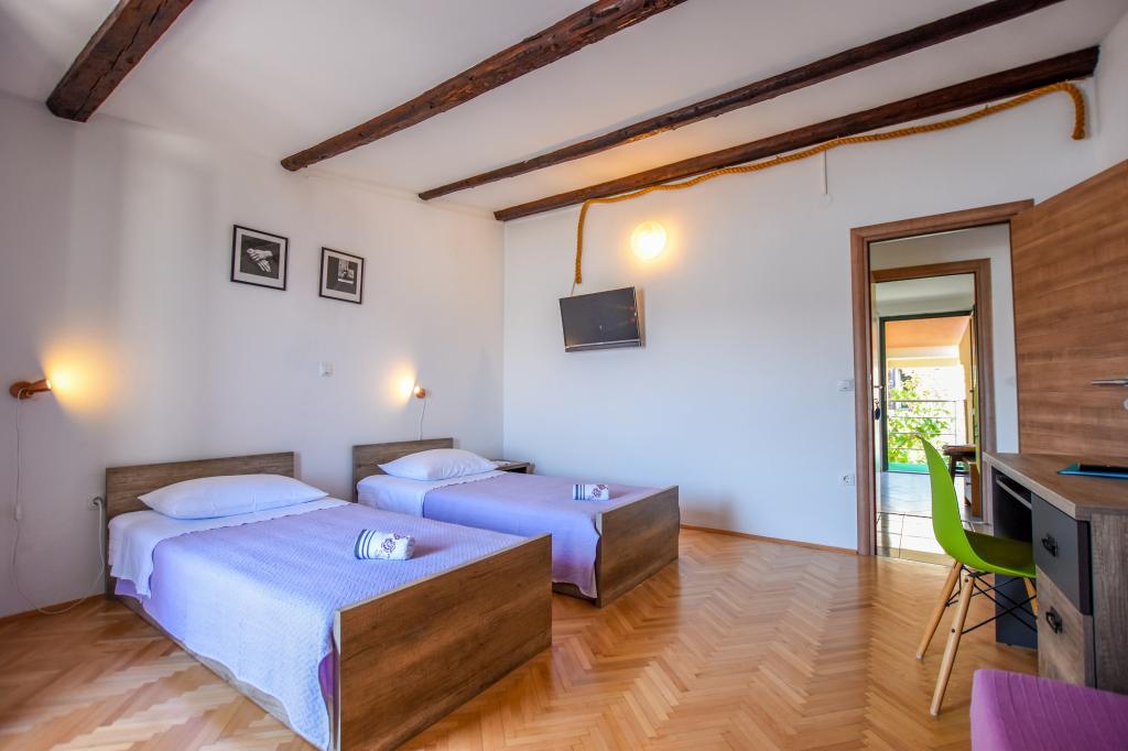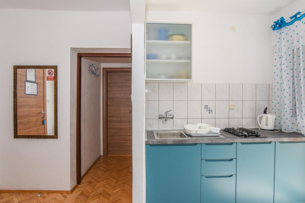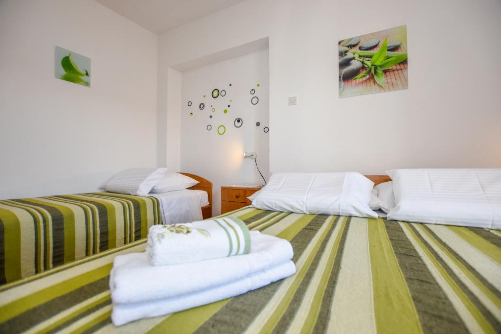 Very nice, friendly, helpful owners. Very good contact. Room - clean, well maintained, large, very well equipped (fridge, gas plate, dishes, cutlery, pots, hairdryer, beach umbrella, welcome clean scented linen and towels). Beautiful view from the terrace and balconies. Guaranteed parking space about 100 m from Near the small beach house. Beautiful, charming little town. This area has many places to explore. Both we and the children were very happy and delighted with Croatia. We recommend!