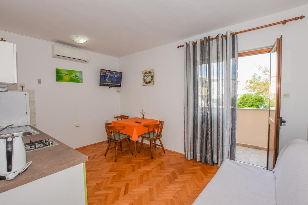 I recomend! Spacious apartment / studio / prepared for us, clean, fragrant laundry and towels everywhere. The photo no longer corresponds to the new reality. New large refrigerator with separate freezer, gas stove / no baking oven /, new flat LCD TV. Excellent location, well-stocked market right under the terrace. The smaller beach is about 60m, but for children it is more convenient / cca 400m / town sand beach with a gradual entry to the water and especially NABOSO! Beach with all the necessary equipment: Toboggan and super fast snack, ice cream, cafeterias, restaurant, all you need. In the city, a big market ... with freshly prepared hot packed meals at a low price. Evening roundabouts, cars, trampolines, bouncy castle, markets ... Private, very spacious parking 50m from the house. The surroundings of the villa are quite quiet, the large terrace is in the shade, which was really cool. We did not need to shut up at all. The beach needs a parasol, water filled base, for a four-member family at least two! Overall very pleasant holiday with excellent accommodation and everything within easy reach. I like to come back. Greetings to the home lady, Croatian football, I want to win! Vladislav