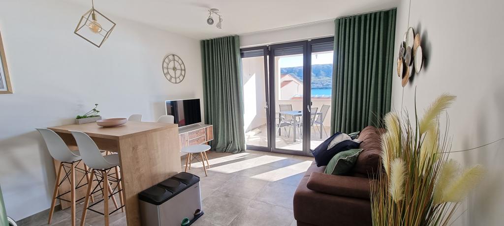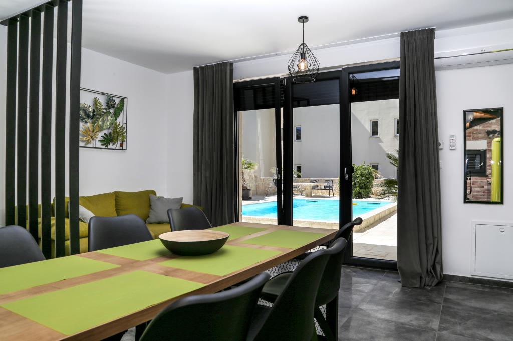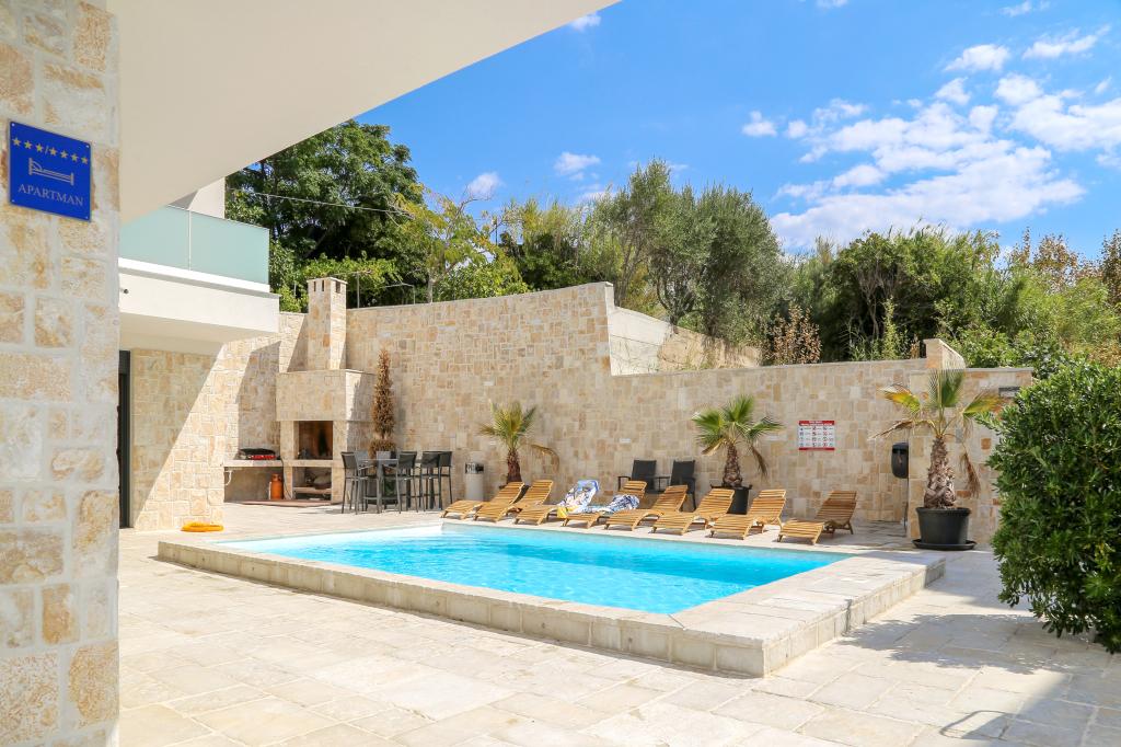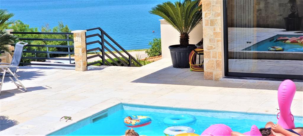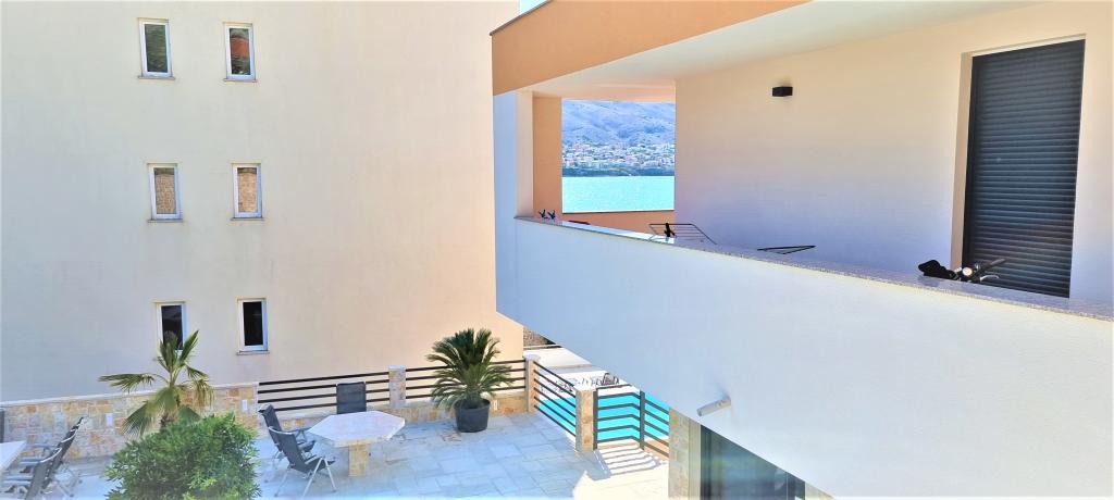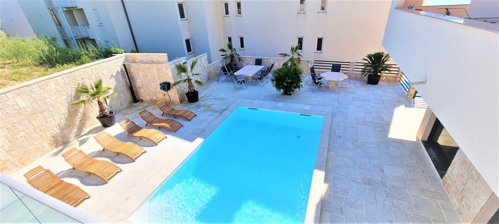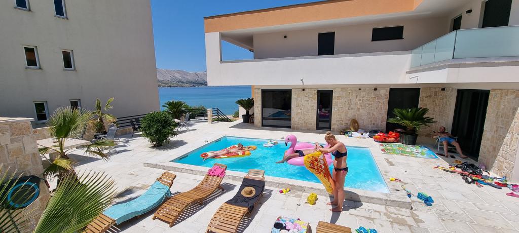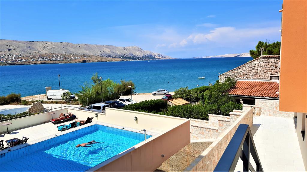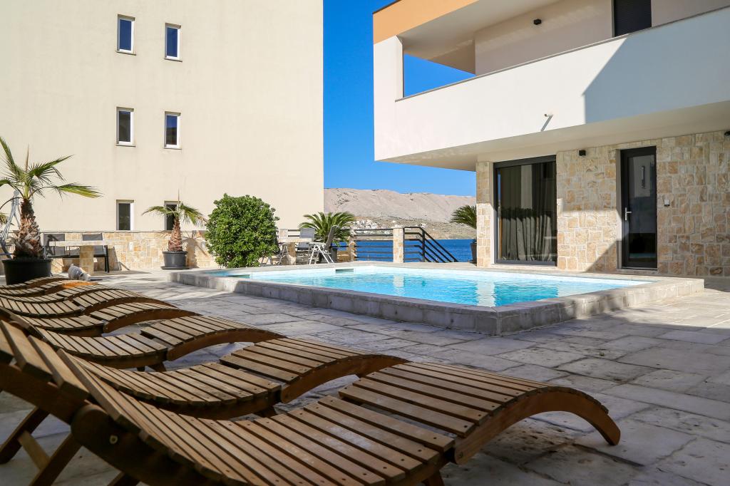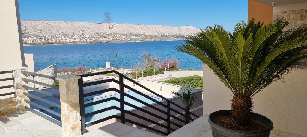 Modern apartment villa with pool-first row to the sea, 400 m from the center of Pag-walk by the sea. Accommodation capacity is 6 apartments of different sizes and interiors. The apartments are air conditioned and modernly equipped, with spacious terraces and sea views.