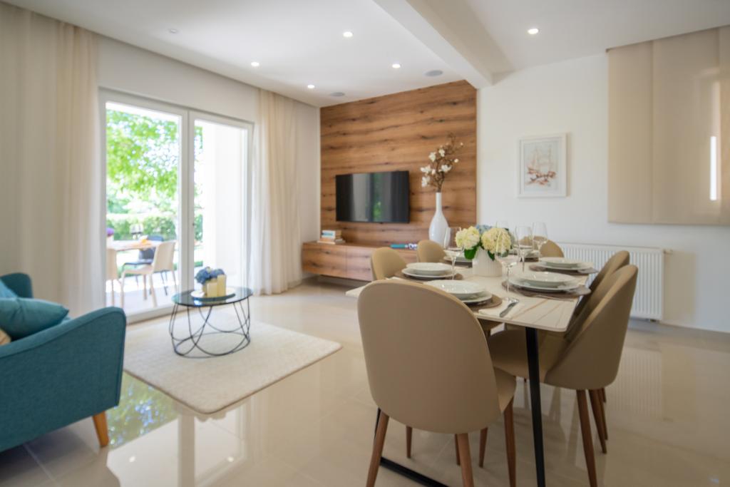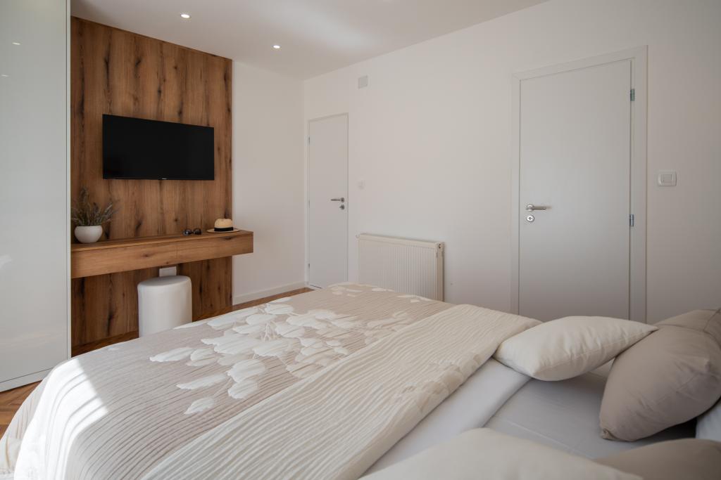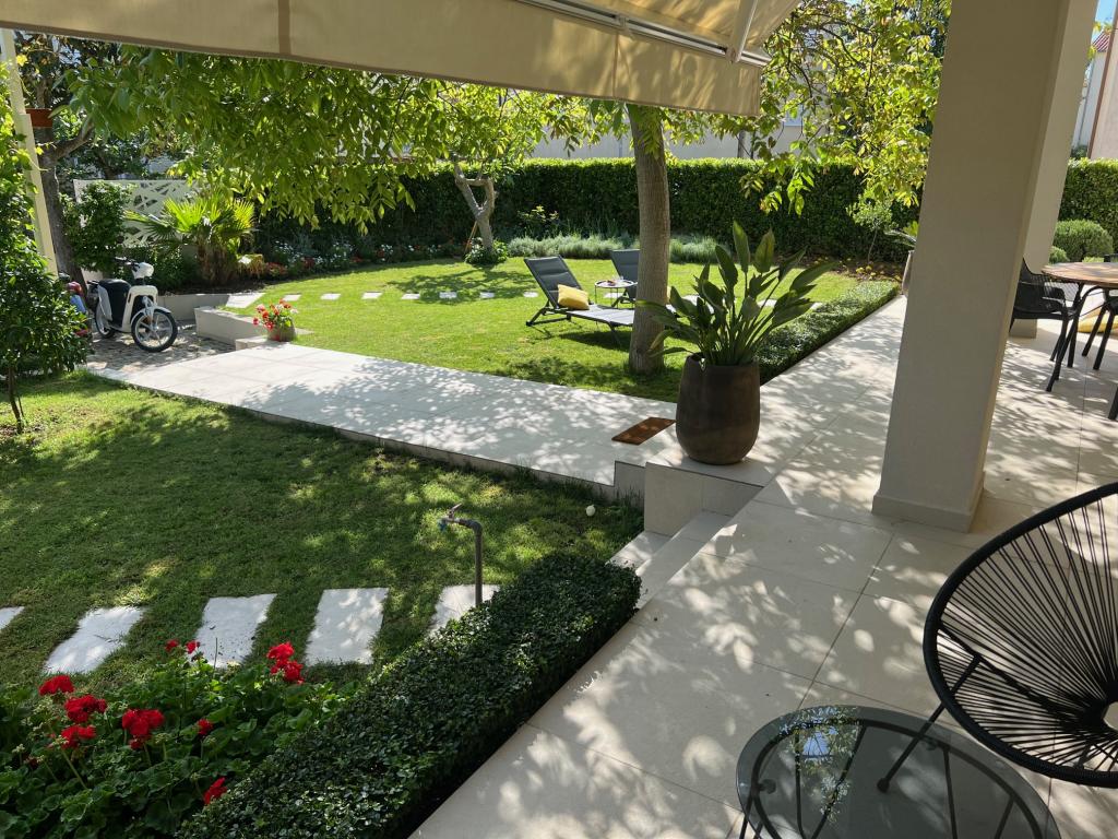 The modern and modernly equipped apartment GARDEN is located on the ground floor of the building and offers its guests, who are also the only guests of the building, a vacation in an oasis of greenery with a large garden and grill. The apartment has 3 bedrooms with a double bed, where each room has its own bathroom and TV, fully equipped kitchen, living room and two terraces. It is 10 minutes away from the town center and beaches on foot. The apartment is an ideal starting point for exploring the rich possibilities offered by the destination.