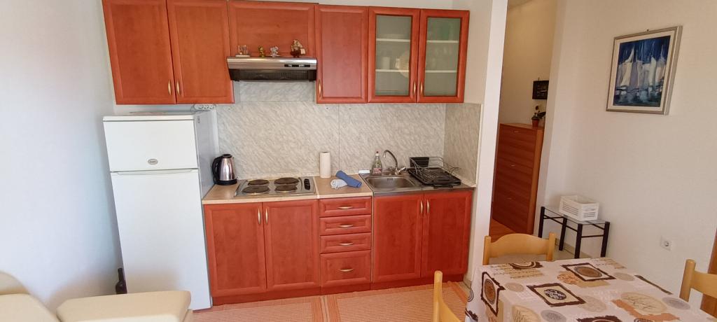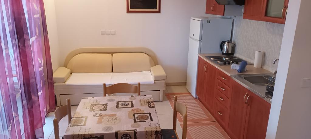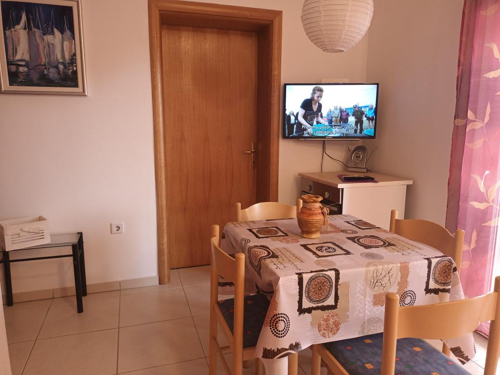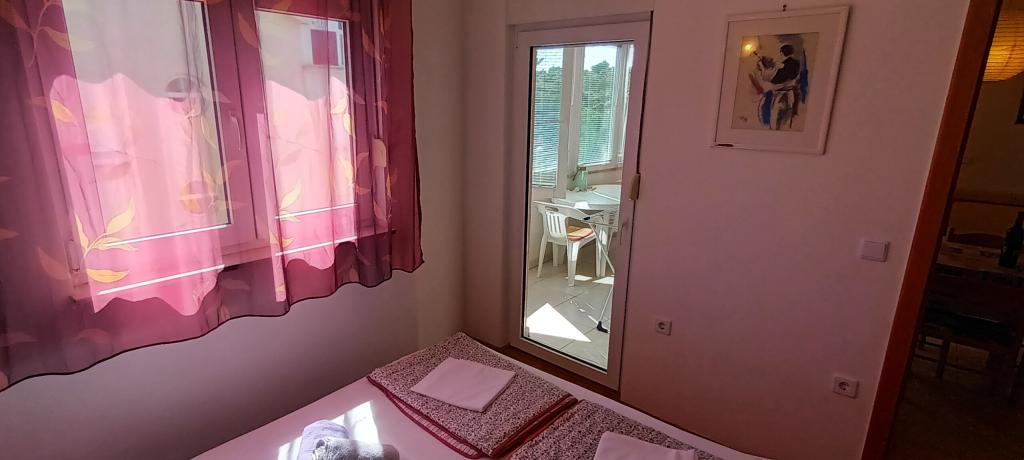 Apartment Mir (42m2, bedroom, kitchen, dining room, living room, bathroom, loggia), 2nd floor in a small residential building in a quiet part of the beautiful coastal town of Pakoštane. It is near the national parks KORNATI and KRKA, 200m from the ornithological park of Lake VRANA (5 minutes on foot), and the cities of Zadar, Šibenik and Biograd. Pakoštane has one of the most beautiful archipelagos on the Adriatic with diverse beaches over 3km long, as well as a large number of bicycle paths. Essential facilities (beach, center, shop, pharmacy) at a distance of about 800 meters or 10-15 minutes' walk. The apartment has its own parking space included in the price (No. 8) as well as a large daily parking lot near all major beaches and in the center of town, which is charged. The apartment is fully equipped, smart TV, air-conditioned, with washing machine and free Internet-WIFI. Satellite TV (HOT BIRD, EUTELSAT, HOTBIRD, with over 500 programs) so that our guests from Europe and the region can watch their favorite programs normally. Welcome!