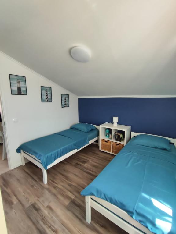 The apartment is newly furnished in a quiet area of Pakoštane, just a 10-minute walk from the sea and 5 minutes from all important facilities (ATM, shop, post office, doctor...). Within the apartment you have the option of using a guarded parking space as well as an outdoor barbecue and a shower and toilet (with a washing machine and dryer).