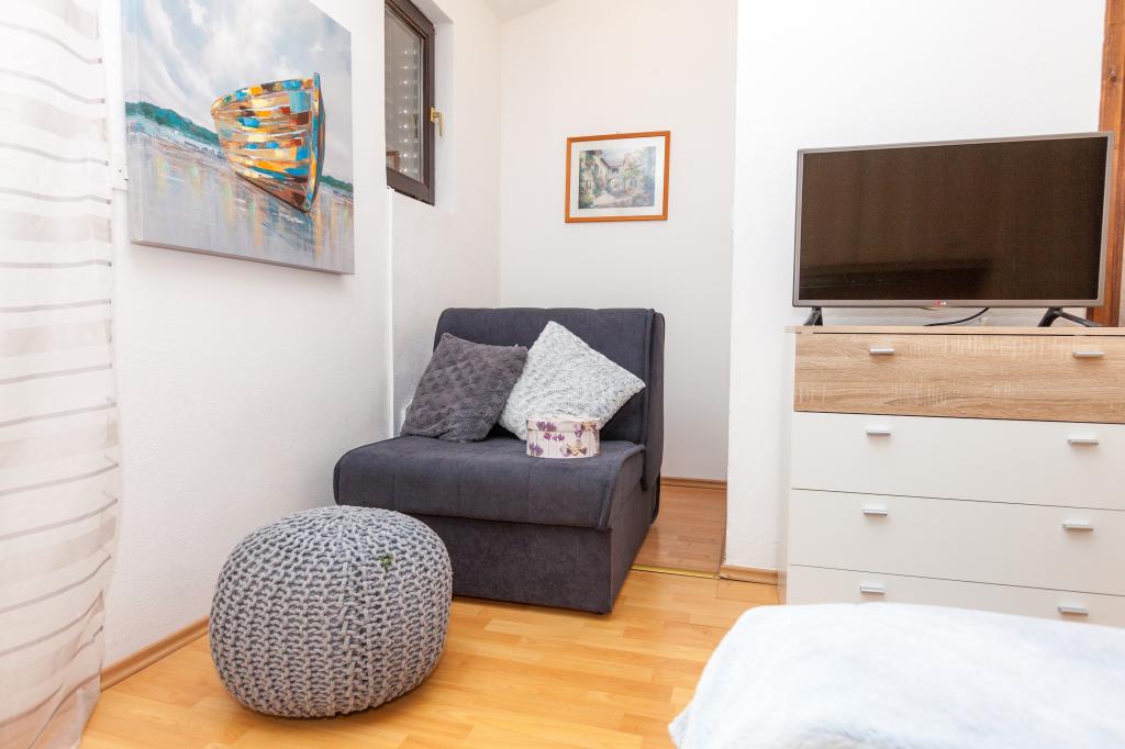 Welcome to Miro Apartments! Our apartments are located in a quiet part of town, not far from the center of Pakoštane. It takes 5 minutes to walk to the beautiful beach and the center. The accommodation is tucked away in a busy street, so if you have children you can enjoy our environment without fear. Next to the apartments in our large garden there is a fireplace where you can prepare a delicious meal. Also, near the fireplace is a garden with unspiced vegetables (tomatoes, cucumbers, peppers ...) at your disposal. In front of the apartment there are secured parking spaces. Wherever you are staying, we wish you a pleasant and beautiful summer day!
