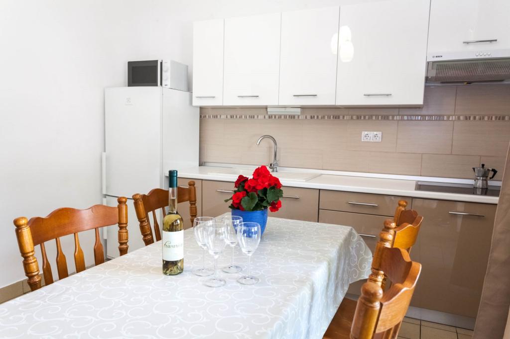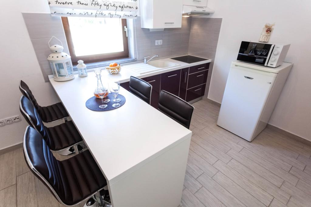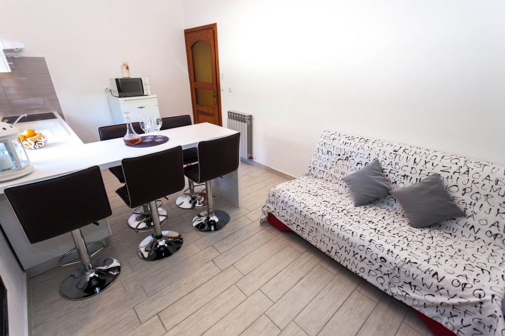 Welcome to our apartments with a sea view! Our apartment, room and studio are located on the second floor of the house, just a 5-minute walk from the first beach and the town center - an ideal location for a pleasant and relaxing vacation. All accommodation units have a beautiful sea view and are equipped with satellite TV and free internet, so you can stay connected during your vacation. Regardless of whether you choose an apartment, room or studio, you can expect comfort and a warm welcome. Arrival is possible after 2:00 PM, and departure is by 10:00 AM. We look forward to your arrival and wish you an unforgettable stay!