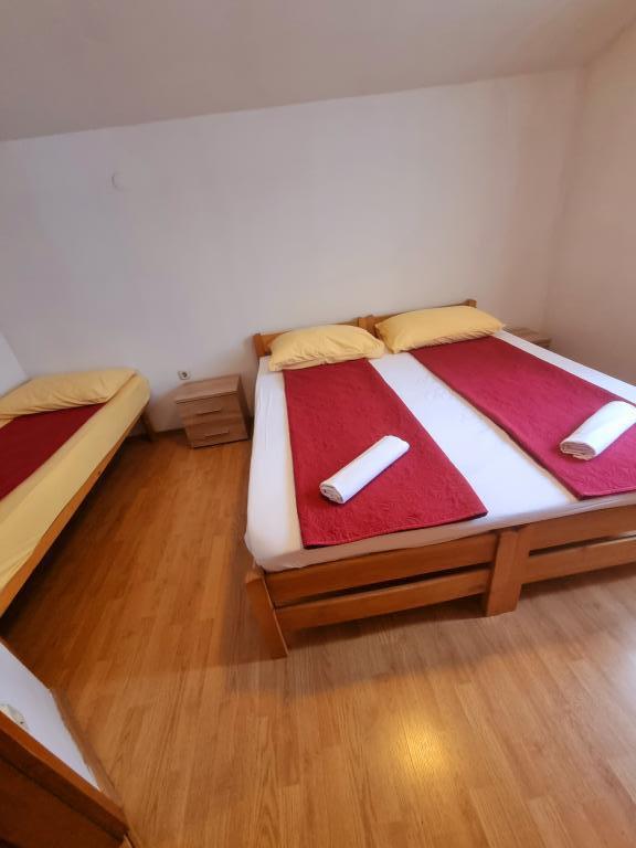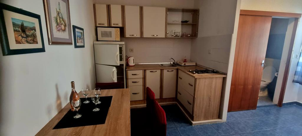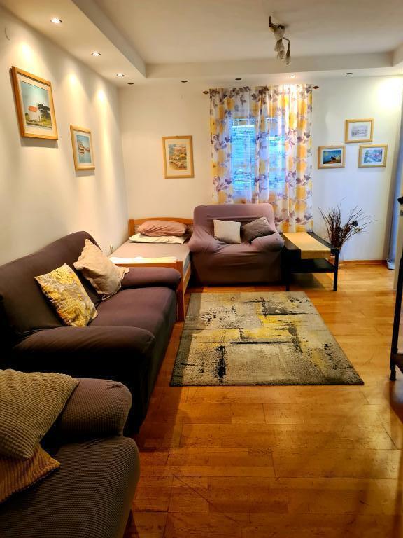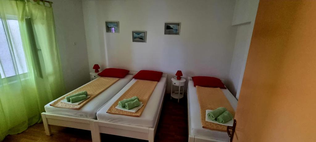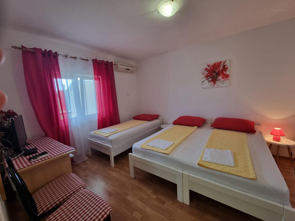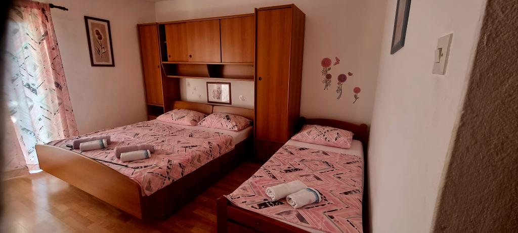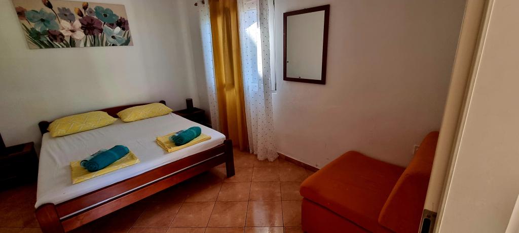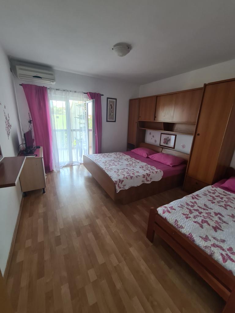 Fully equipped apartments in a quiet area of Pakostane, located second row to the sea. The facility is located 5 minutes walk to the center and 5 minutes walk to the beach. Welcome drink is included in the price. We have a large parking grill in the yard. The apartments have large terraces. In our place you have organized trips to the national parks Kornati, Paklenica, Krka Waterfalls, Plitvice. You can also register diving. Horseback riding. Tennis courts, sailing, cycling. Large selection of restaurants and cafes. The house is large and has 6 apartments.
