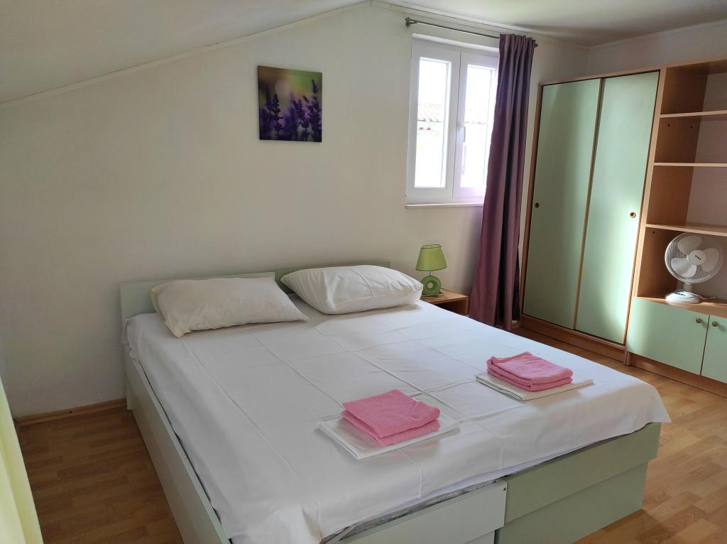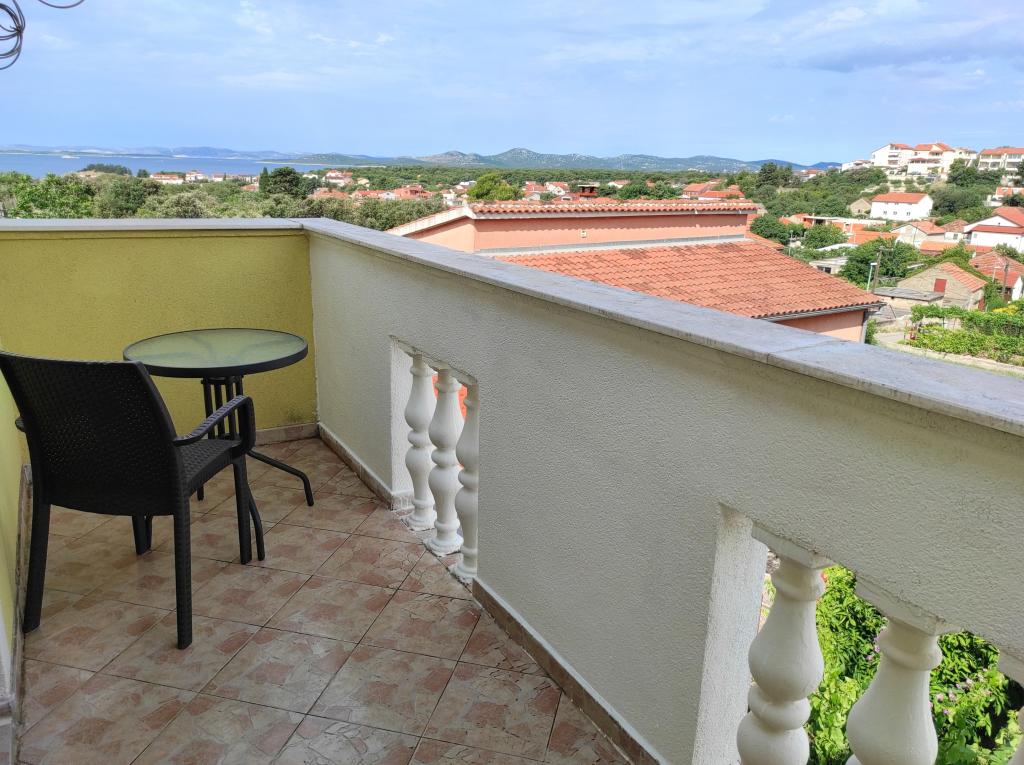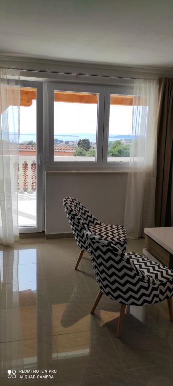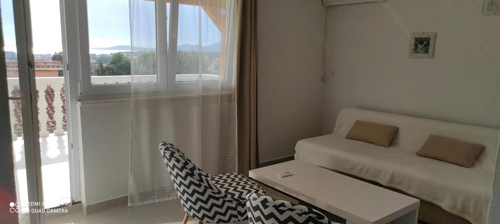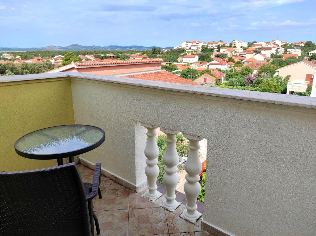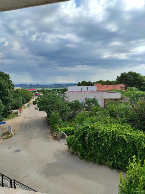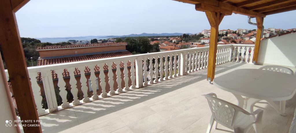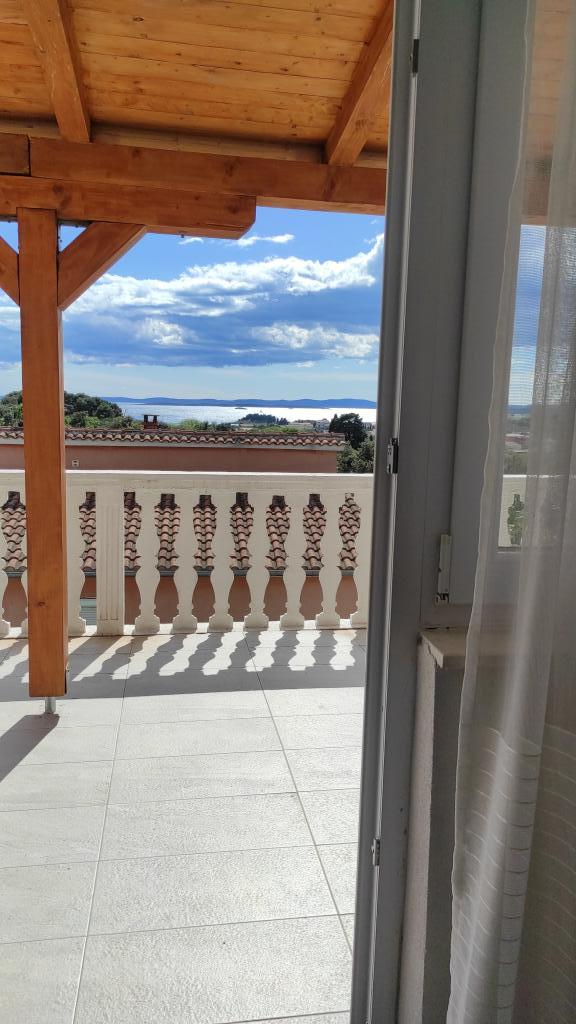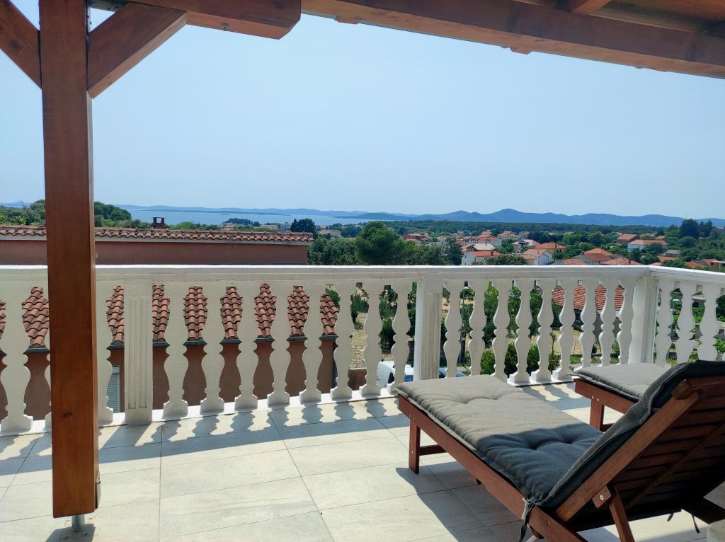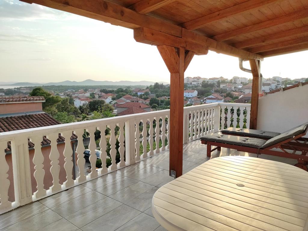 The family house in which the apartment is located is located at a distance of 600m from the sea, i.e. from the center of the town. It is 500 m from Lake Vrana. It is surrounded by greenery and can provide every guest with a peaceful and pleasant vacation. The apartment is 100 m2 in size. It consists of 2 double bedrooms, a living room with a pull-out bed, a kitchen, a bathroom and a large terrace of 30 m2. It is located on the second floor of the house and has a separate entrance. The apartment offers a beautiful view of the sea, the town, the lake and the distant Velebit. Guests can use the outdoor space on the ground floor as well as the grill. Parking spaces are located in the yard. Please contact us via e-mail, because that way we can provide you with all the information quickly and in detail.