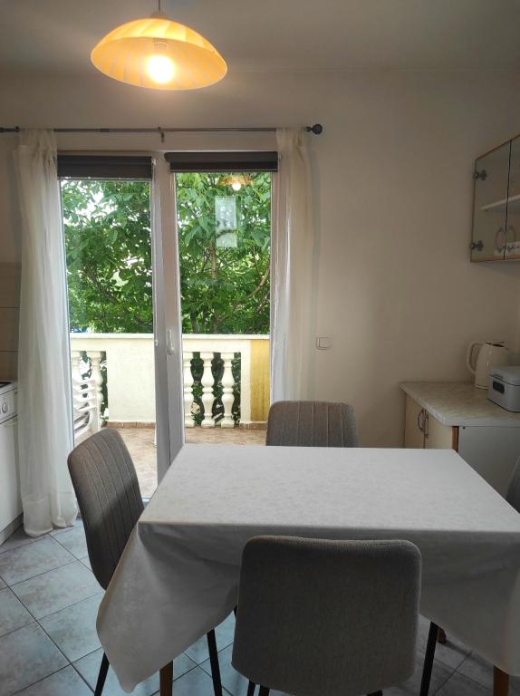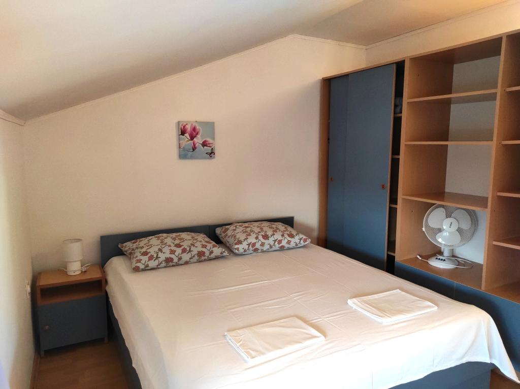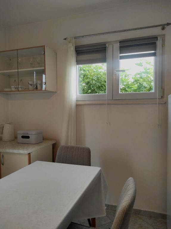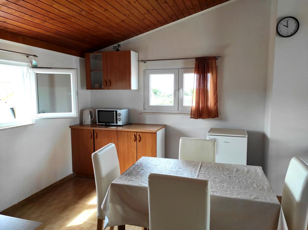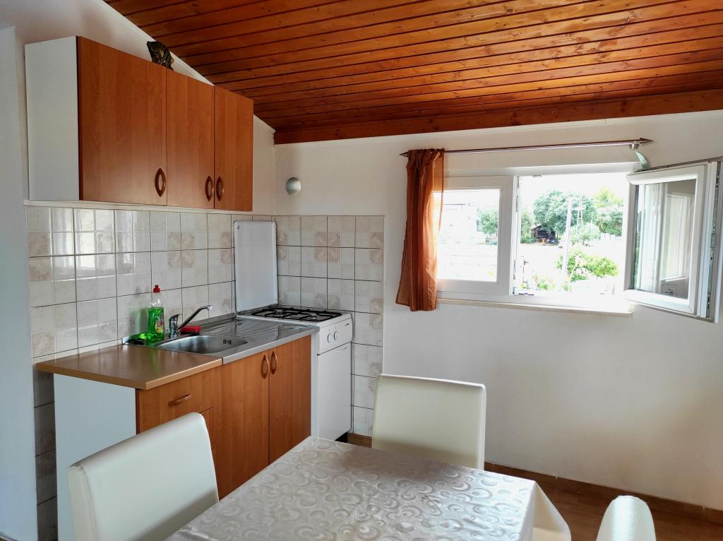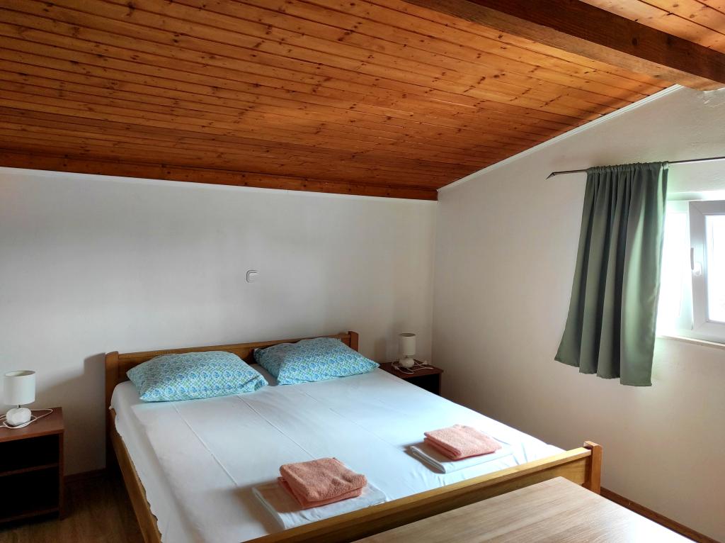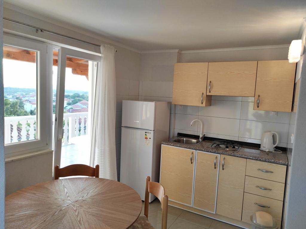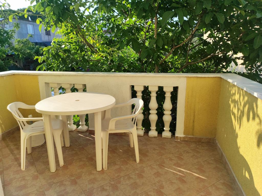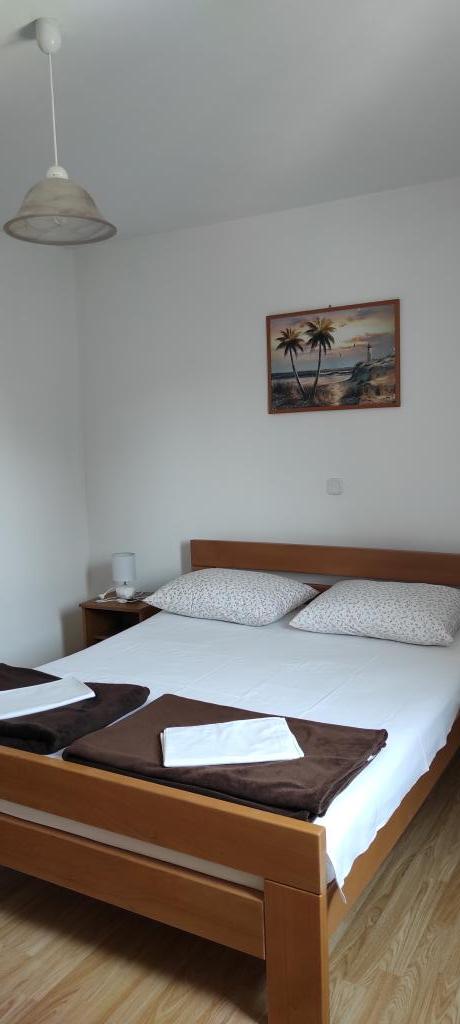 The family house in which the apartment is located is located at a distance of 600m from the sea, i.e. from the center of the town. It is 500 m from Lake Vrana. It is surrounded by greenery and can provide every guest with a peaceful and pleasant vacation. The apartment is 100 m2 in size. It consists of 2 double bedrooms, a living room with a pull-out bed, a kitchen, a bathroom and a large terrace of 30 m2. It is located on the second floor of the house and has a separate entrance. The apartment offers a beautiful view of the sea, the town, the lake and the distant Velebit. Guests can use the outdoor space on the ground floor as well as the grill. Parking spaces are located in the yard. Please contact us via e-mail, because that way we can provide you with all the information quickly and in detail.
