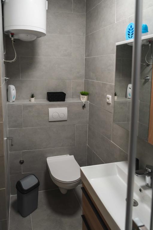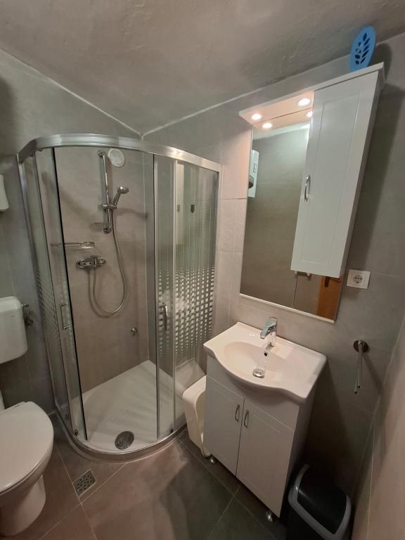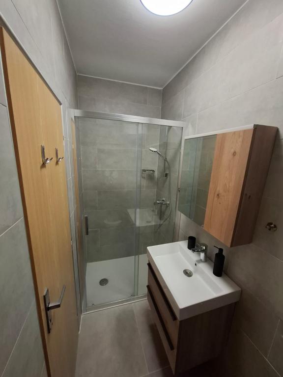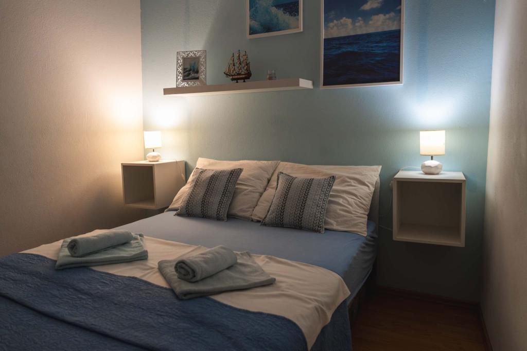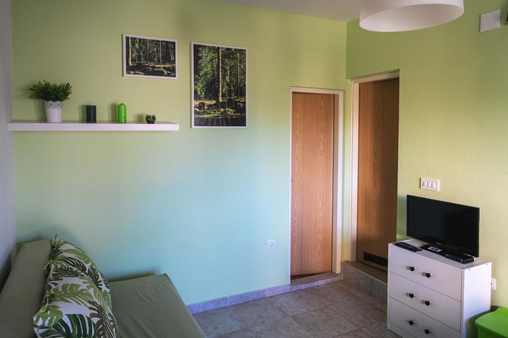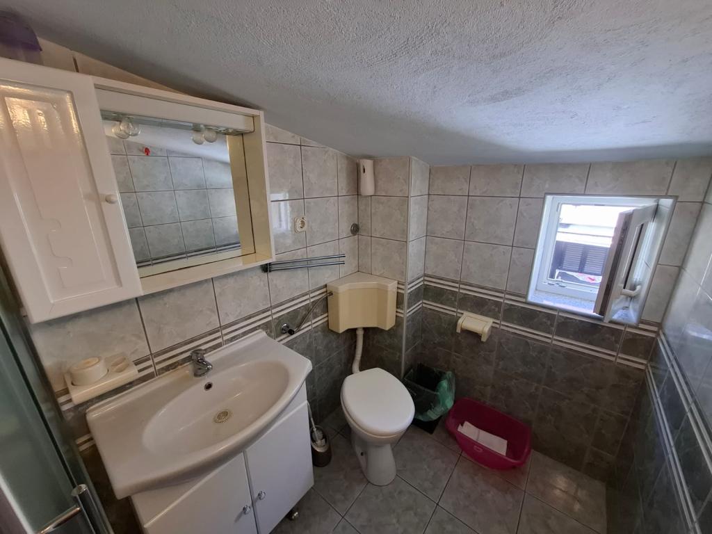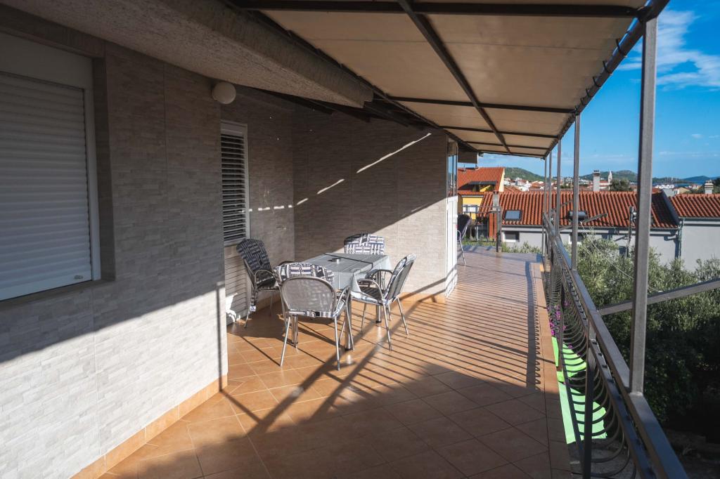 Four APP (2 2) in a quiet part of Pakostane. APP consists of a bedroom where a double and triple closet. The living room has a bed (200x140), table with four chairs, and in one corner of the kitchen. The kitchen consists of sudopra, furnaces kuhanhe with oven and refrigerator. Apartment owns air conditioning and TV. In front of APP's terrace with a table and four chairs for your APP. APP is on the first floor of a private house. Two-bedroom apartments consist of two bedrooms, kitchen, dining room and bathroom with shower. The apartments have a large terrace overlooking the sea, air conditioning. TV. In the backyard barbecue children's swings and parking in the fenced area.