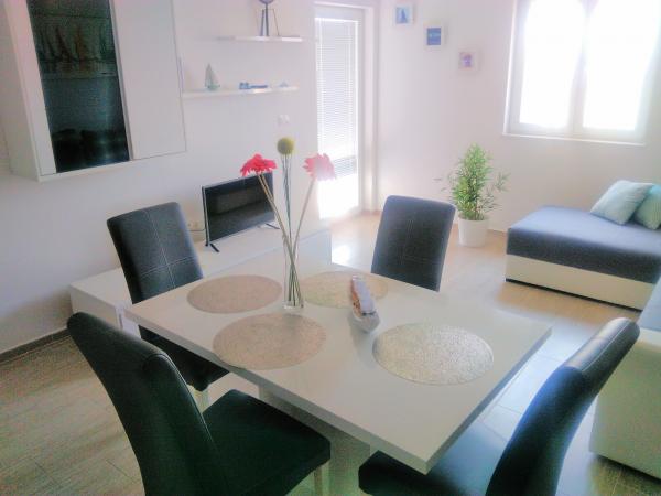 We had a wonderful stay in Sandra's apartment. The apartment is modern, very well equipped and tastefully decorated. From the terrace you can enjoy a small sea view very appreciable. This one is big enough to be comfortable during meals. The bedding is really comfortable. As far as we are concerned, we found that the situation was ideal because of the city center, so quiet, yet still close to it. Pakostane is a central city that and visit the region during many days. And besides, Sandra is a remarkable host. It's impossible to do better. We can only thank her from the bottom of our hearts for her welcome. We recommend without hesitation to all holidaymakers. Look no further than Sandra for a few days in this region. It's 20/20! We did not have the opportunity to say goodbye to her because she was away when we left, so we kiss her today for contributing to 6 wonderful vacation days.