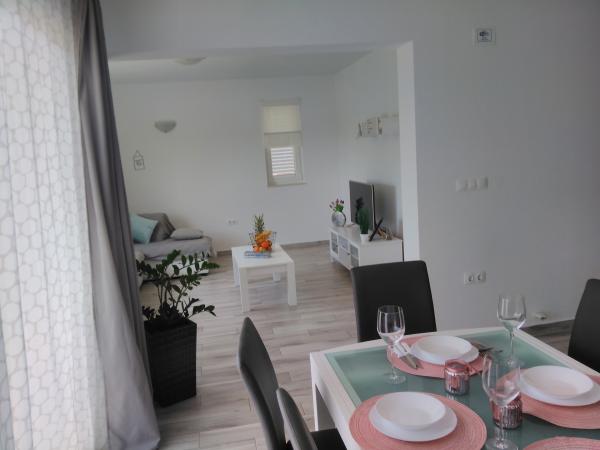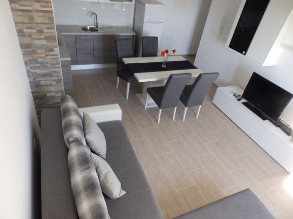 The new four apartments are fully and modernly equipped in a quiet and wooded area surrounding Pakoštane. They are located between Vransko Lake and the sea near the four national parks. The facility is a 10 minute walk to the beach, the center and all the major facilities. There is parking for each guest.
