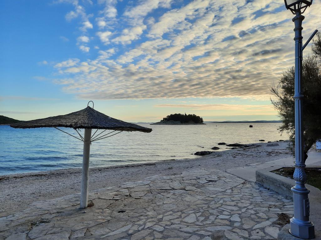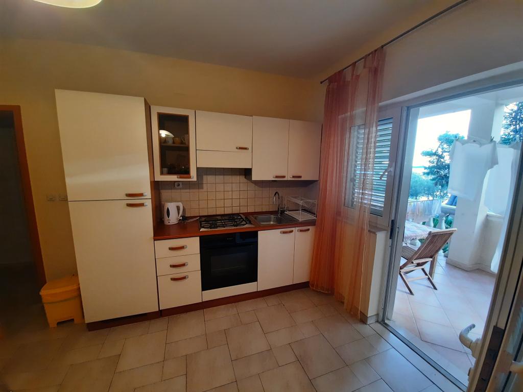 Great accommodation, the beach directly in front of the apartment is sandy, you can go far enough to the sea, ideal for small children. In the peak season, it is quite full, but a little bit next to where the entrance to the rocks is, there are much fewer people. The apartments are clean, slightly smaller in size, but they will provide you with everything you need. The kitchen is fully equipped, I missed a microwave a bit, but we managed. They had a 2+1 studio, with a large terrace, overlooking the sea. The parking lot is under trees, they provide enough shade for cars. The hosts live on the top floor, so they are always available, they have a buffer with burgers in front of the building. The owner Katarzyna is very willing to help, send more photos if interested, and if larger apartments are needed, they have another house about 80m from this one, which is managed by her mother-in-law. There is a small bakery not far from the apartment, they sell fresh fruit every morning in front of the apartment. The location is ideal for families with children, on most beaches there are gradual entrances to the sea, there are many small islands in the vicinity, which can be reached on pedal bikes, or you can rent a boat for the whole day and ride further. The only minus: the owners could assign the photos to individual apartments, so that the interested party can find his way when he is interested in an apartment. Katarzyna will send you a photo on request, but after all, only when you see it right away, you can make a decision sooner. We would definitely like to come back here again, we were very satisfied.