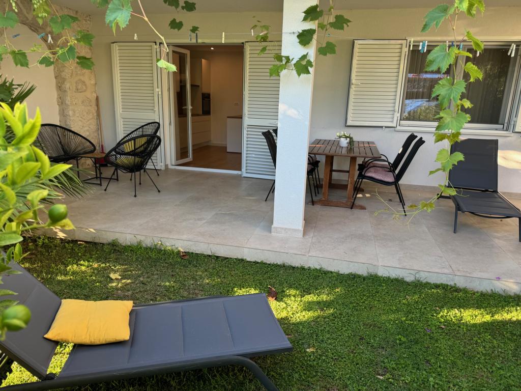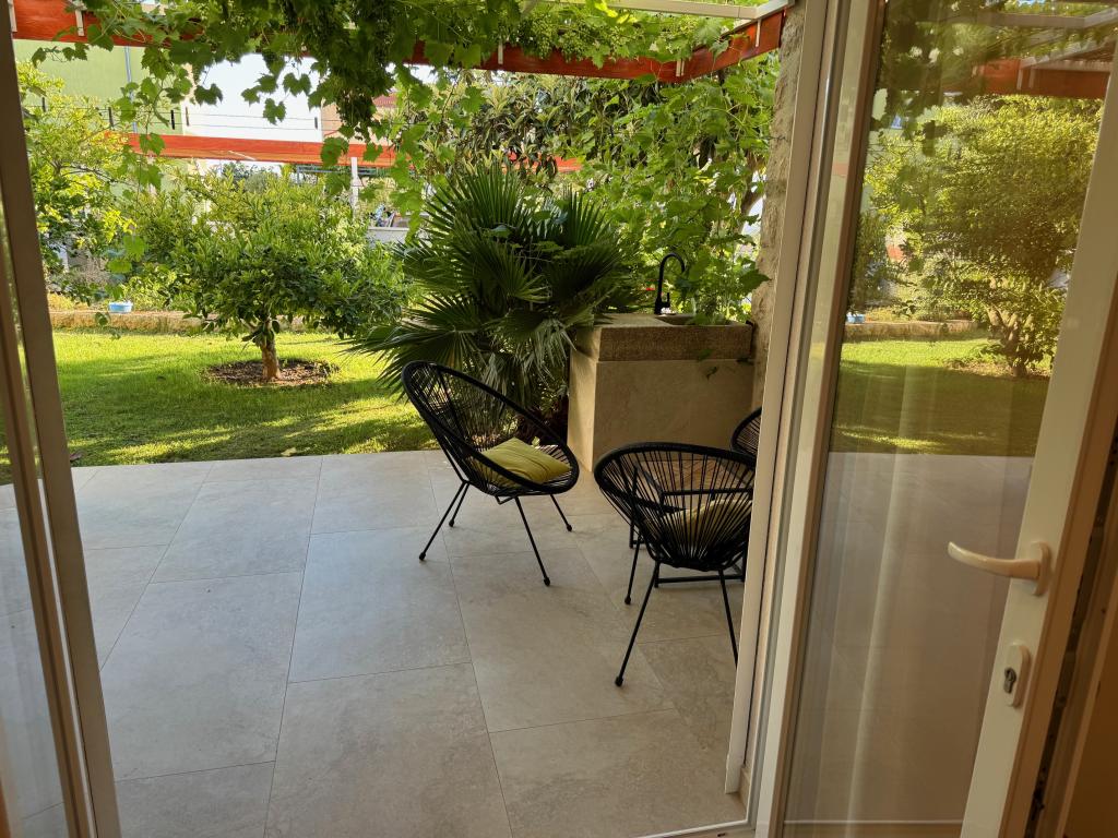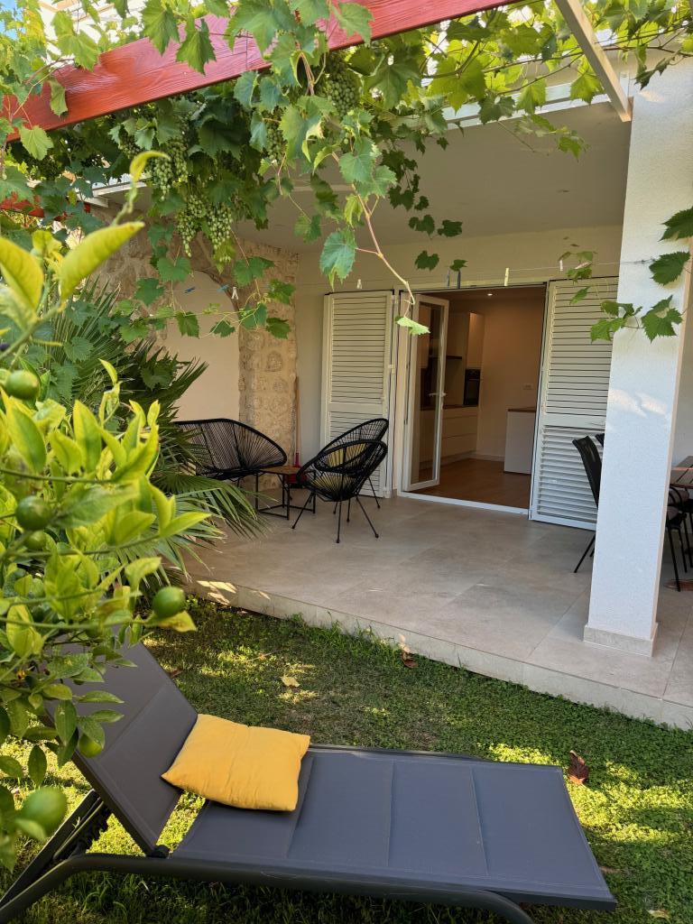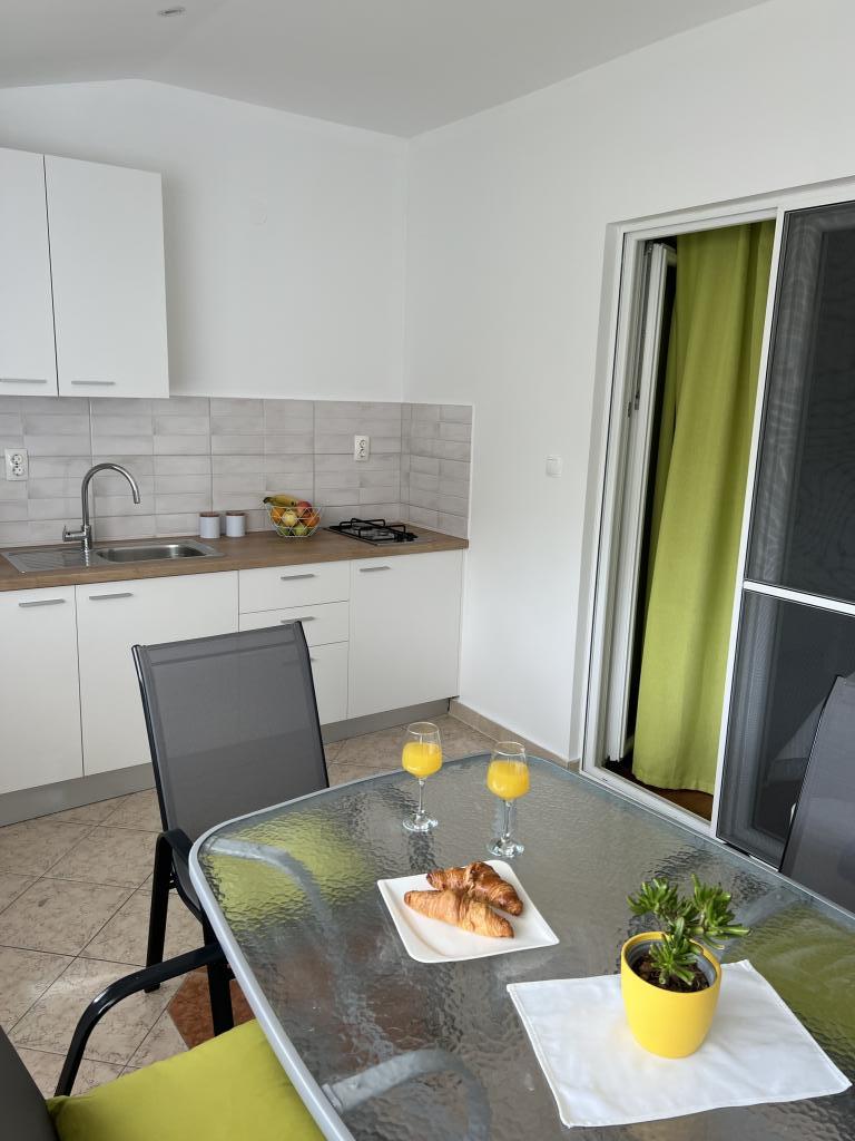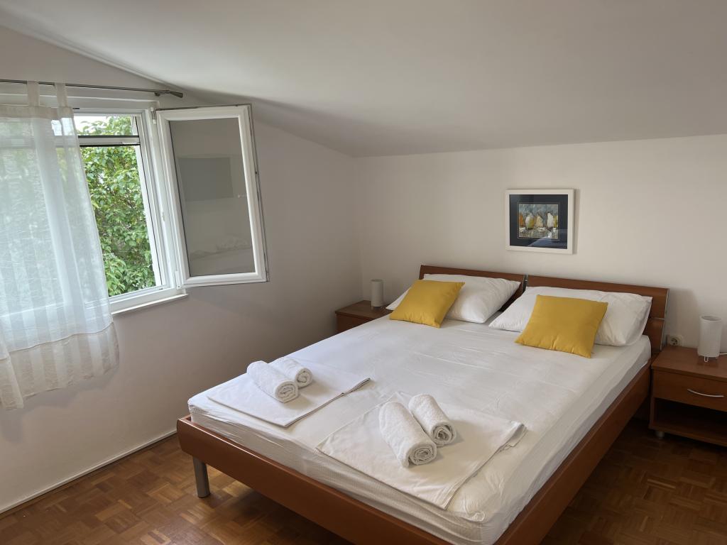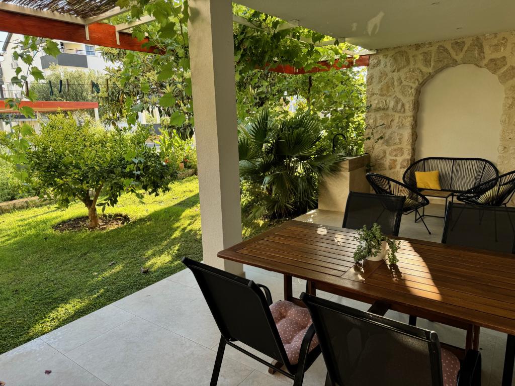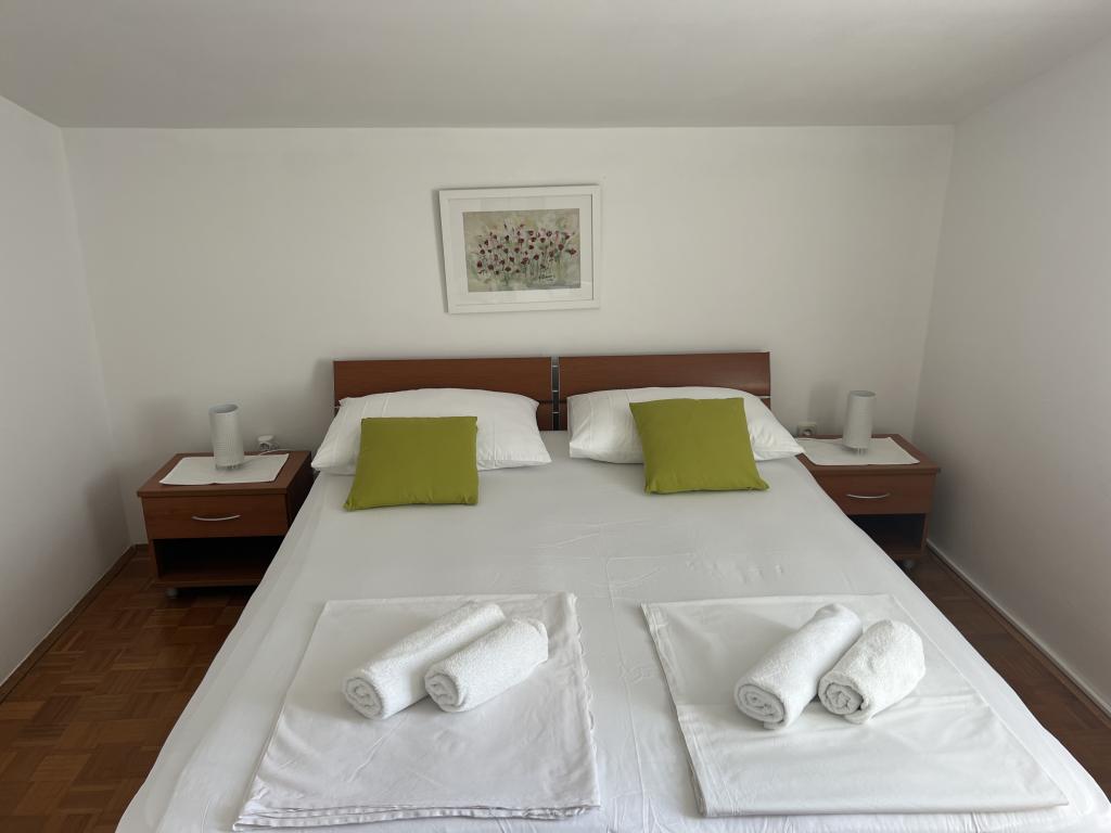 Fully furnished apartments near the city center in a quiet street, the second row of mora.Objekt is located 3 minutes walk to the city center and 5 minutes walk to plaže.Objekt has a lot of greenery and shade, and offers guests enjoy a spacious lawn terasama.Veliki suitable for play djece.Parking for cars in hladu.Turisti can use the grill in the backyard. The hosts are friendly and hospitable, and his experience of over 35 years in tourism guarantee our guests the best service.