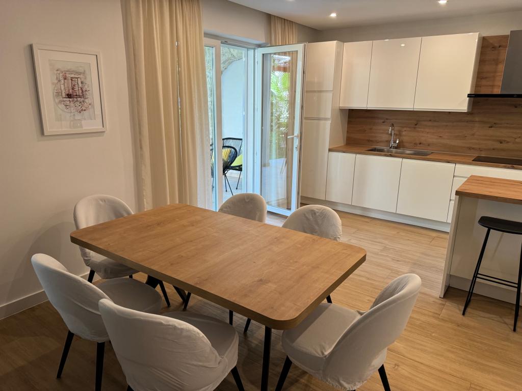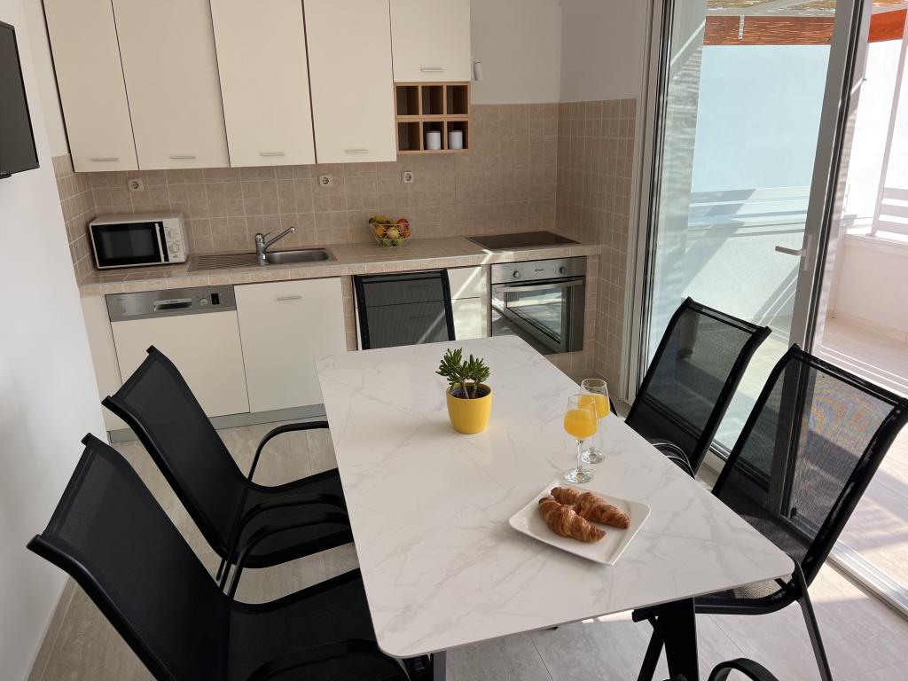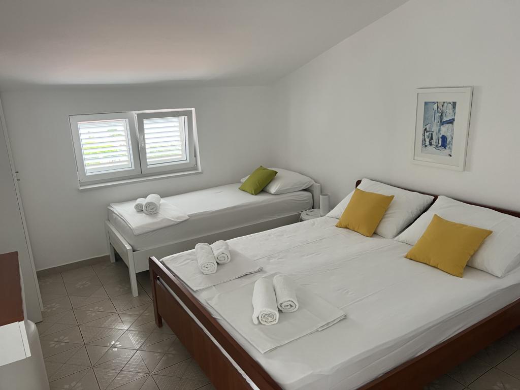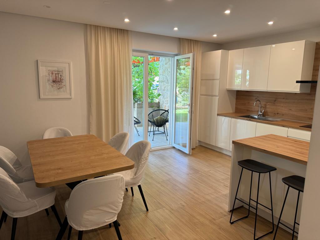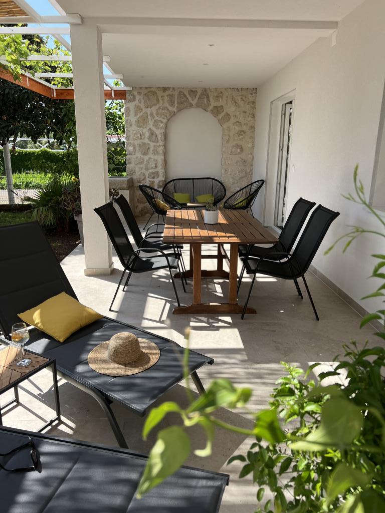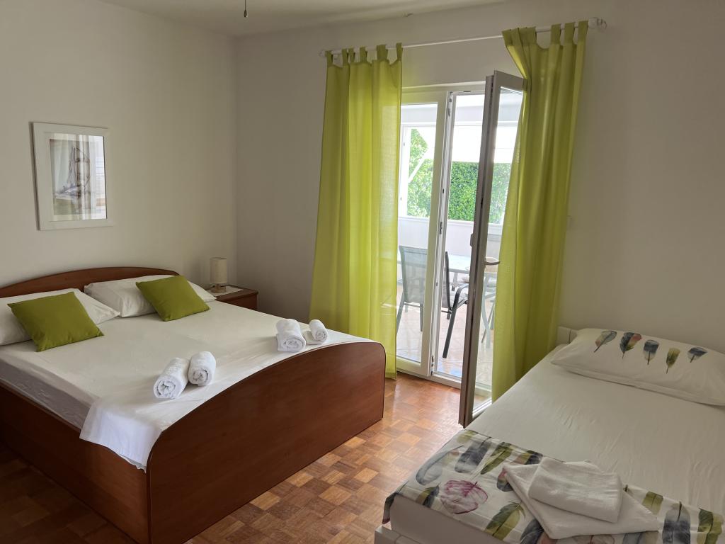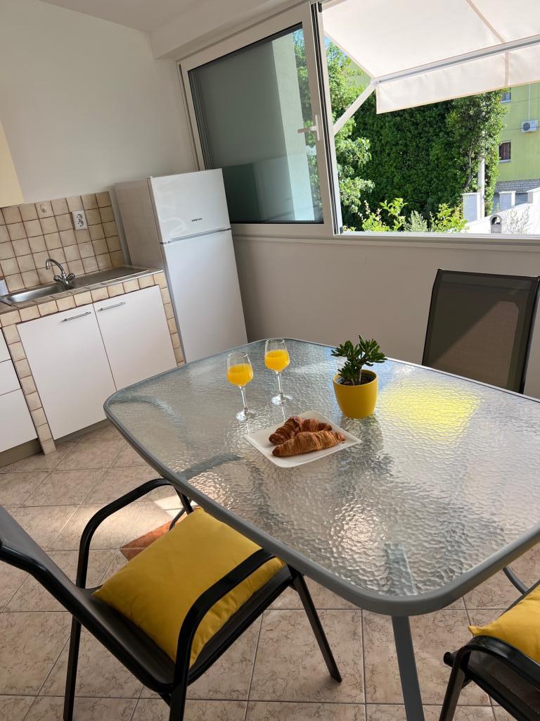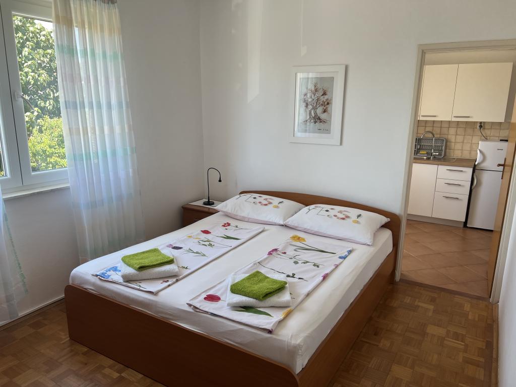 Fully furnished apartments near the city center in a quiet street, the second row of mora.Objekt is located 3 minutes walk to the city center and 5 minutes walk to plaže.Objekt has a lot of greenery and shade, and offers guests enjoy a spacious lawn terasama.Veliki suitable for play djece.Parking for cars in hladu.Turisti can use the grill in the backyard. The hosts are friendly and hospitable, and his experience of over 35 years in tourism guarantee our guests the best service.