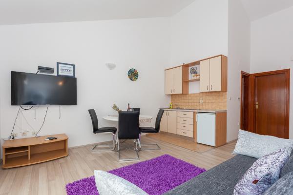 A large, clean and well-decorated apartment in an exceptional location. Nearby - no need to use a car, several beautiful beaches, shops 5 m away, cafes, restaurants and own parking right in front of the apartment. Top-quality equipment of the apartment - everything for cooking, a large TV with plenty of content, WiFi, air conditioning, a large balcony with an awning and a beautiful view of the sea, which, due to its position, is not hot and can be enjoyed all day long. In addition to all that, the welcome, warmth and accessibility of the owner of the apartment is a guarantee for an ideal vacation. All the best and we will surely come back every year.