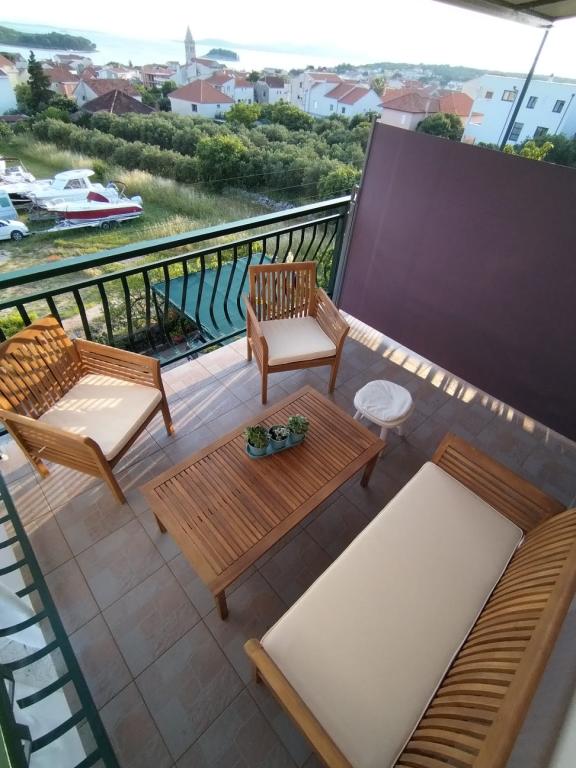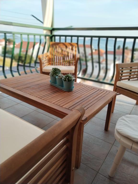 The apartments are spacious and clean. Beautiful terrace overlooking the sea and nearby islands. The owner is very friendly, you can buy various home-grown products. Beach and town close by. We recommend!