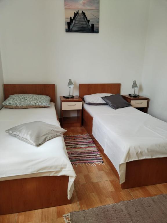 Apartments Lucia are suitable for two families with children. They are located in a quiet part of Pakoštane, 2-3 minutes walk from the beach. The apartments have a shared balcony with a sea view. Refrigerator with freezer. Parking is on the property. An advance payment is required by arrangement and the rest is paid at check-in. It is not allowed to bring other people to the apartment, except those listed in the reservation. Self-service laundry in Pakoštane, near the municipal building