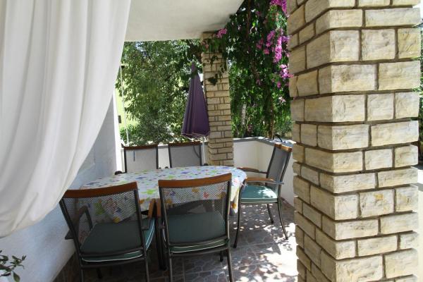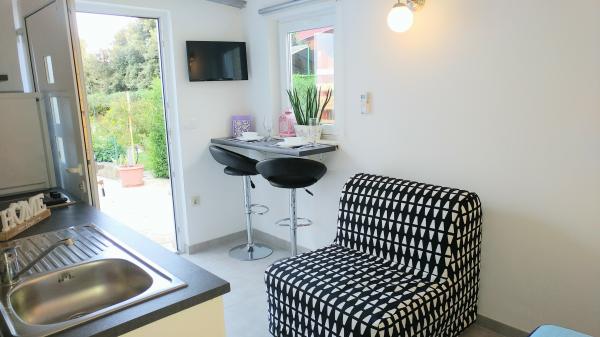 Apartments A4 1 are located on the ground floor of a family house, and apartment A2 2 of the stable unit. The mobile home is located at the same address as the apartments, and has a large terrace and a play area in front. The apartments are located in a quiet street, 3-4 minutes walk to the beach and the center.