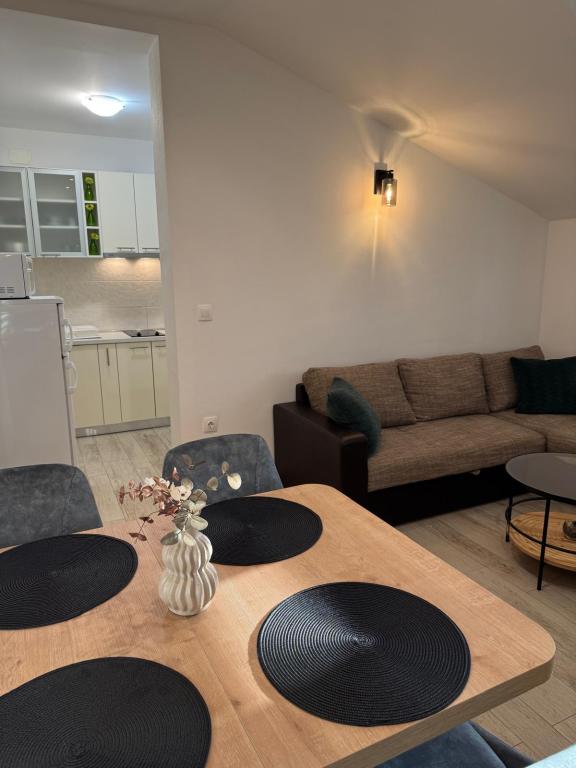 A good number of friendly owners staying in the house is undoubtedly a great advantage of a great terrace, along with equipment. The apartment is well-ventilated and extremely tastefully furnished. Parking space in the yard is enough, you never have to look for space when you roll back in the car. The access and cleanliness of accommodation and everything around is at the highest level. Only in bed could you do more to comfort yourself. We will be happy to return.