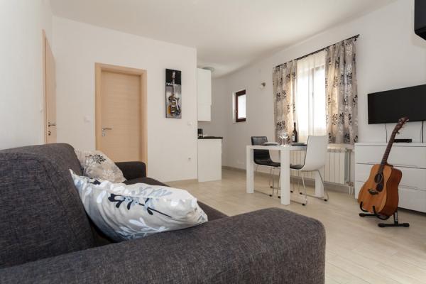 The studio apartment was exceptionally clean with all the necessary little things for a pleasant stay. The hosts were always at your service, kind and friendly and ready to help. A big advantage is the parking in the shade, the proximity to the sea and everything you need can be visited on foot. They welcomed us nicely and saw us off nicely with a small token of attention that says a lot about the fact that their guests are the most important thing to them. Thank you for everything.