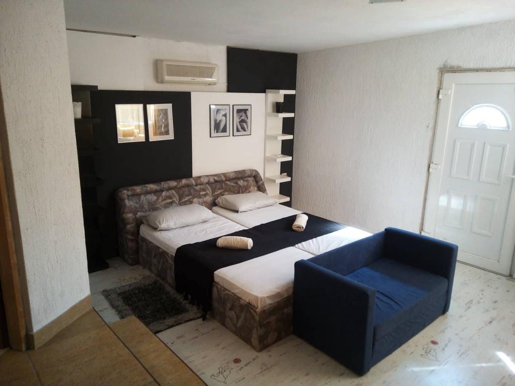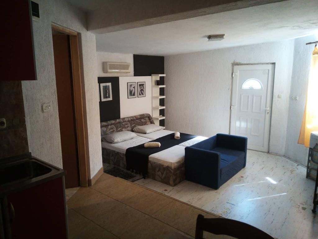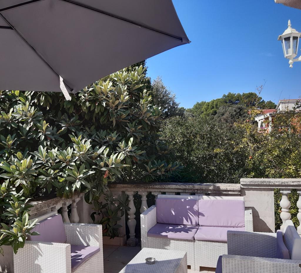 The apartments are located in a dead end street, without noise and traffic, so you can enjoy the relaxing atmosphere in peace. Each apartment has a separate entrance and a private terrace where you can smoke. The apartments are equipped with everything you need (bedding, towels, dishes...). The beach is a 5-6 minute walk away, as is the center. There is a restaurant and a bakery in the immediate vicinity of the apartment. Apartment 1 is located on the first floor with two bedrooms, a bathroom, anteroom, kitchen with living room and terrace. Apartment 2 is located on the ground floor and has a private garden. It consists of a bedroom, living room with kitchen, bathroom and terrace. The studio apartment is located on the first floor with a terrace - sleeping area, bathroom and kitchen.