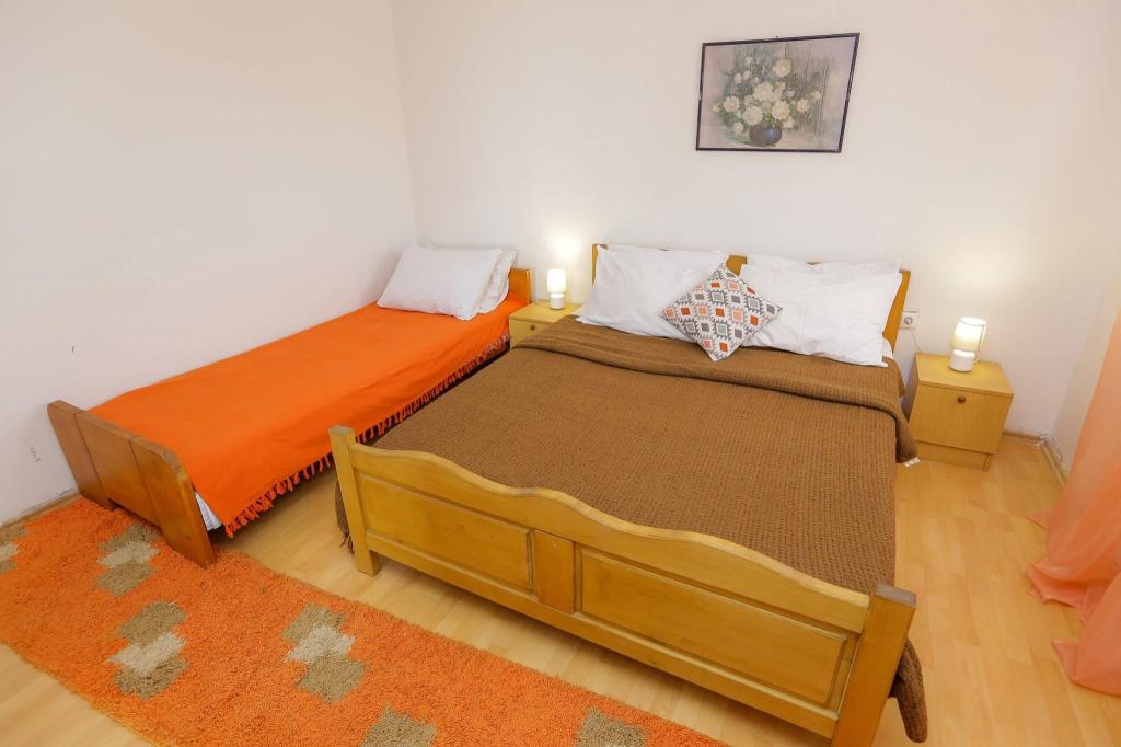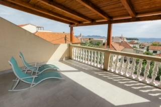 The house is located 300 m from the town center and the town beach. Modernly furnished apartments on the 1st and 2nd floors have large terraces with a view of the Kornati Islands. Quiet neighborhood near the market, doctor and bus station. Big screen TVs have more than 100 programs in different languages. Garden with barbecue behind the house.