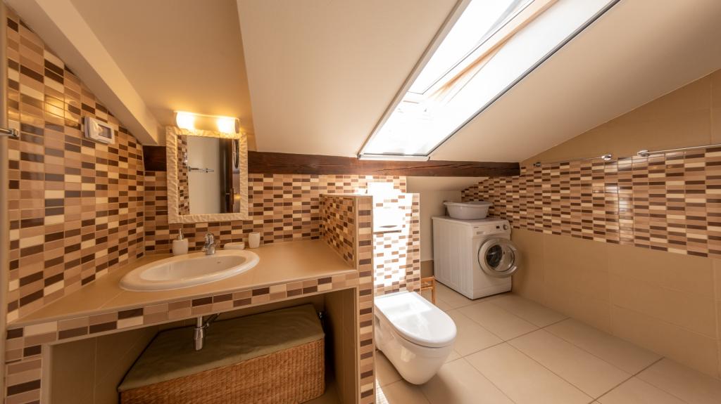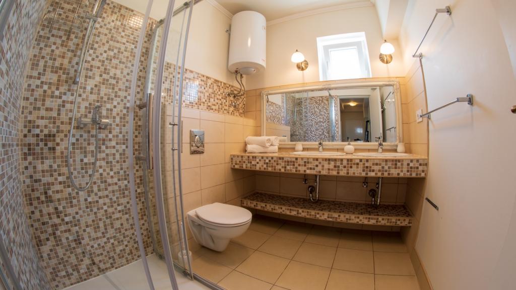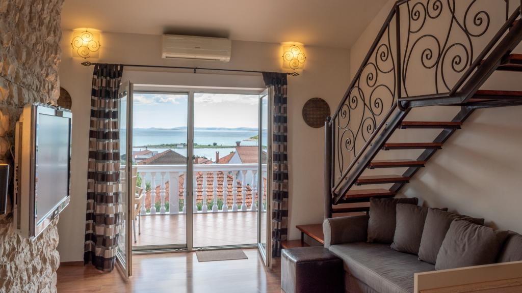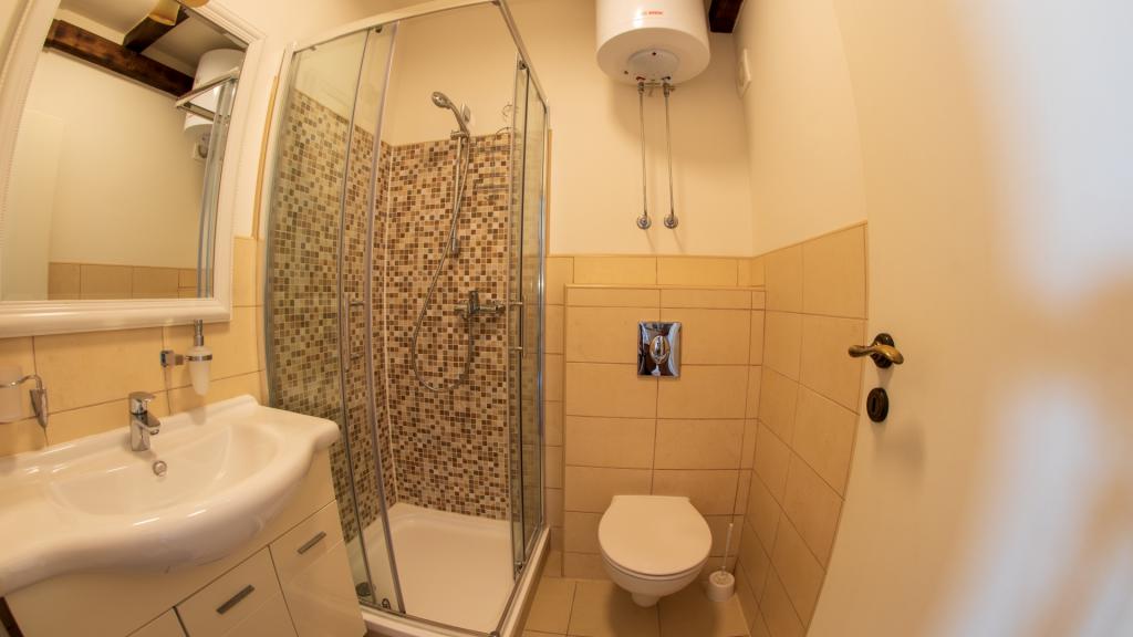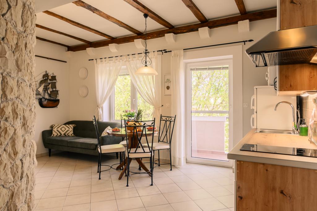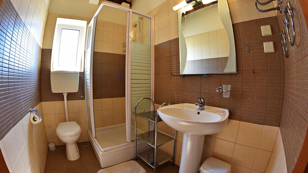 The accommodation is located very close to the coast, beach, and city center, with minimal elevation. The accommodation itself is new, modern, spacious and very cozy furnished. The neighborhood is quiet. We went with a family of 6, complete kitchen, dishwasher. A washing machine is not available separately in the apartment, but shared with other apartments for rent. The host family is a very nice, helpful, lovable family, they speak excellent English and German. They live on the ground floor and are available at any time. Comfortable big beds, great bathrooms. Parking was perfectly arranged, we went with two cars. The beach is pebbled and deepens well. Water is clean and not too salty. The beach is not crowded, it was never a problem to find a suitable place as soon as we got down. ...so we didn't have to go down to the beach early in the morning, just to have a place later. You can also see the open sea. Small town is very cozy. There is a CBA-Tesco-like store, Plodine, very close, but there is a good fruit and vegetable store and a bakery quite close around the corner. Highway takes you very close. Conveniently accessible. There are many excursion opportunities in the area, boating, hiking, cycling, the owners will help you organize them.