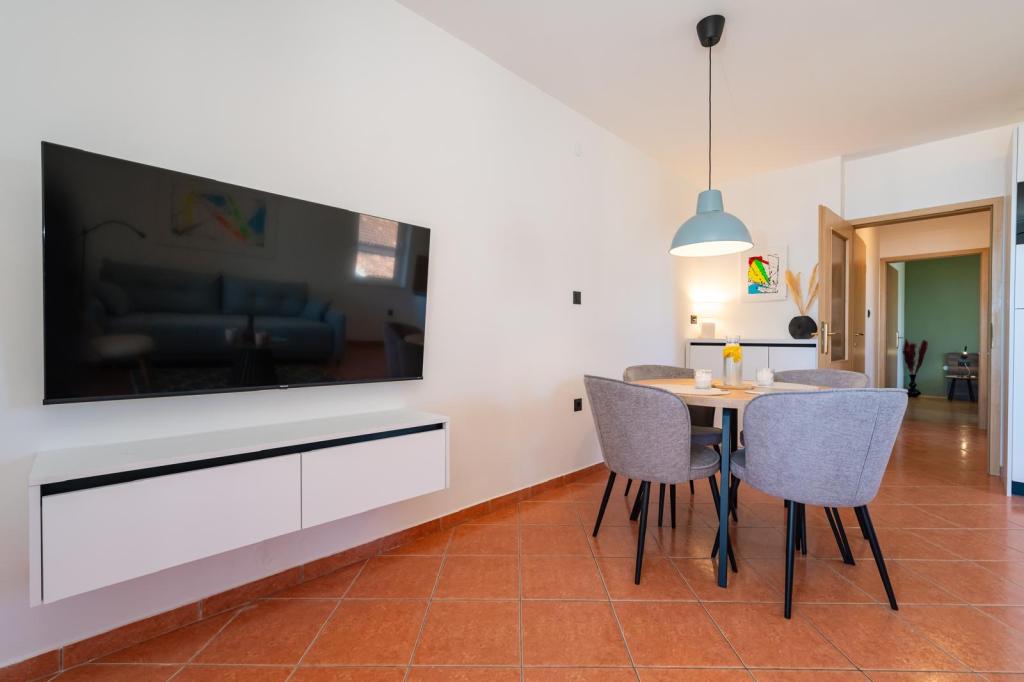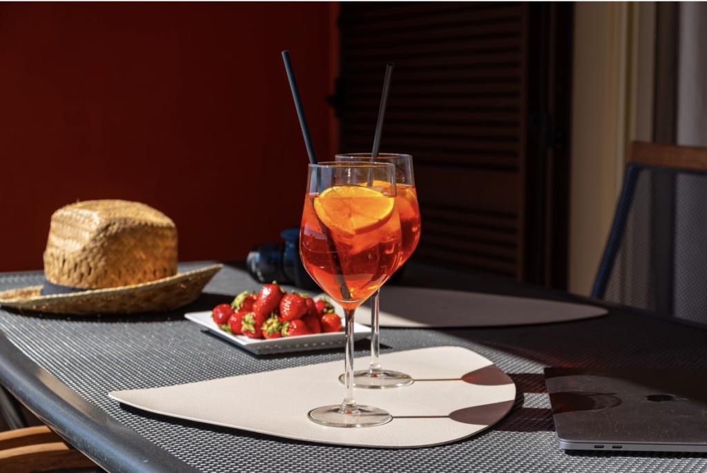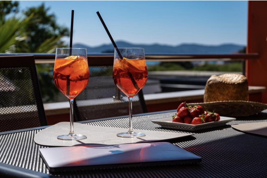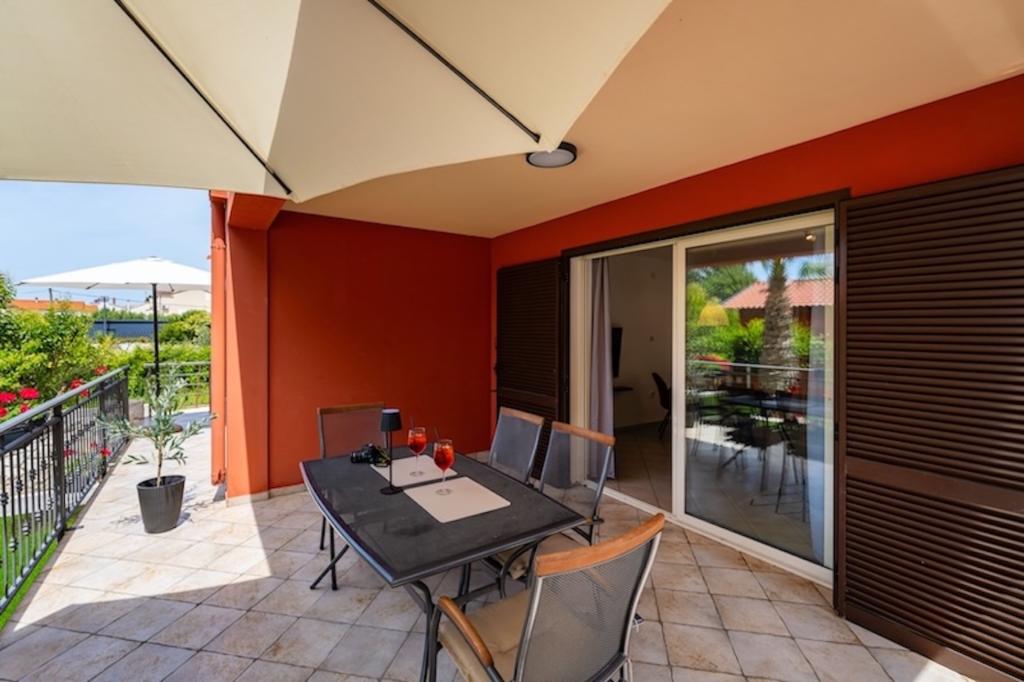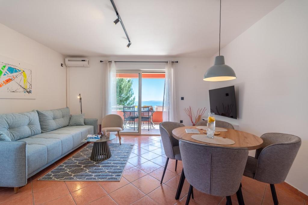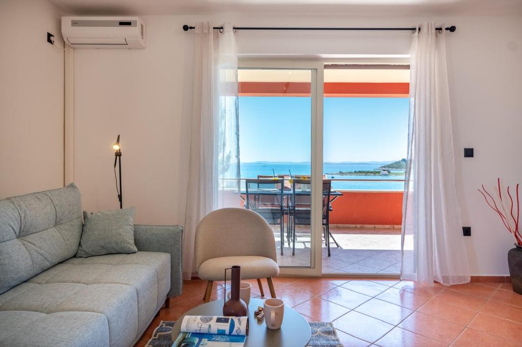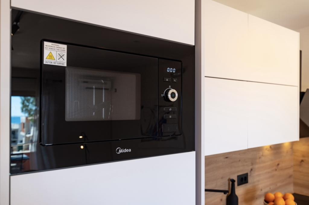Villa San Marino has eight identical apartments located on three floors. There are two apartments on each floor. The apartments are 55m2 in total and contain a double bedroom, a living room with a click-clack bed, a kitchen, a dining room and a large terrace. All apartments are in the first row to the sea and face the sea. They are equipped with air conditioning for cooling and heating. The kitchens are equipped with utensils for preparing and serving food and drinks in appropriate quantities, a refrigerator, a freezer, an electric hotplate, a gas hob and a hood, and the bathrooms have showers. Each apartment has a flat-screen TV with satellite and antenna and Internet access. The terraces have seating furniture.