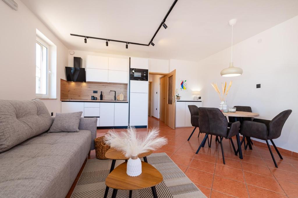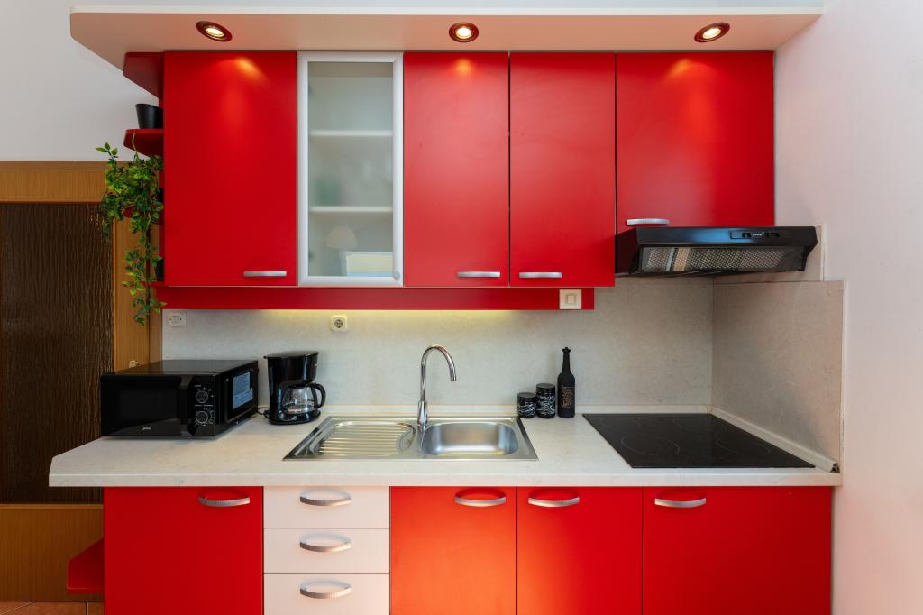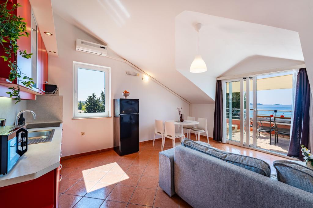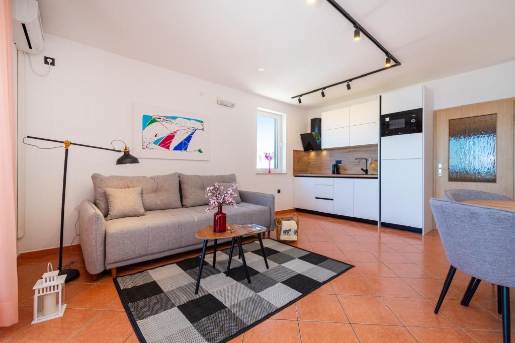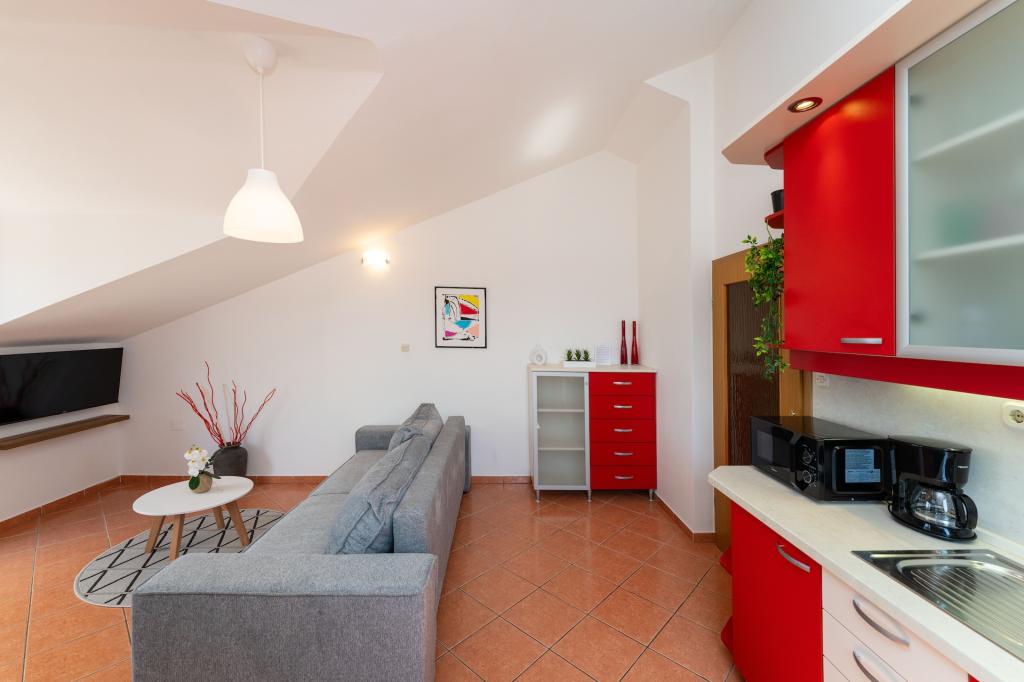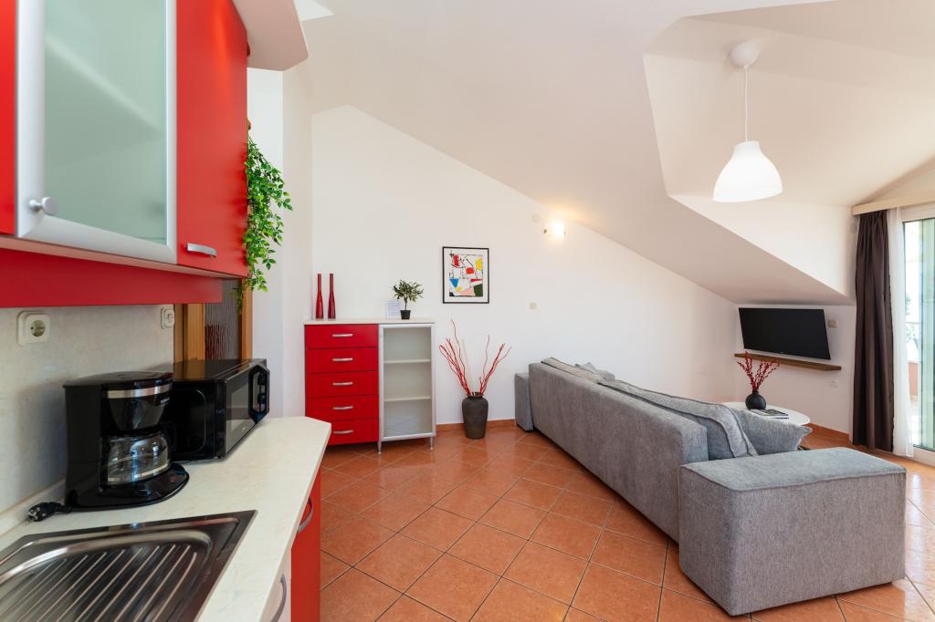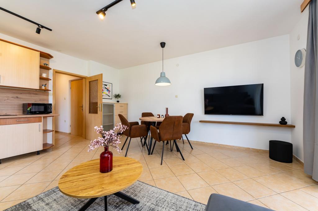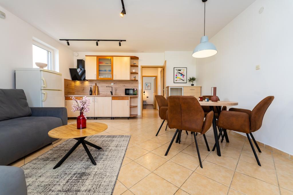 Read more Accommodation unitsFor all apartments, the maximum number of people is 4. One parking space is provided per apartment in our parking lot. Small dogs are allowed, but with prior notice and upon request. Entry to the apartments is possible from 2:00 p.m. on the day of arrival. Please leave the apartment by 10:00 a.m. on the day of departure. No more people than specified are allowed in the apartments and rooms. Bringing guests to the apartment or room for the night is possible only with the permission of the owner. On the day of departure, you are obliged to inspect the apartment or room with the host and compensate for any damage. It is not allowed to bring weapons, prohibited narcotics or other dangerous and/or flammable substances into the apartments. The apartment owners are not responsible for the possible disappearance of the guest's belongings and valuables. It is not allowed to take out the inventory of the apartment (towels, blankets, umbrellas, etc.).