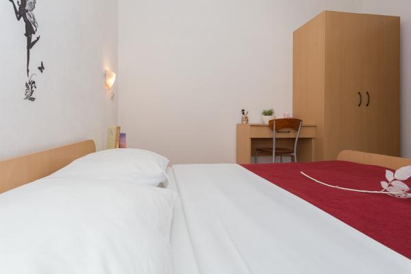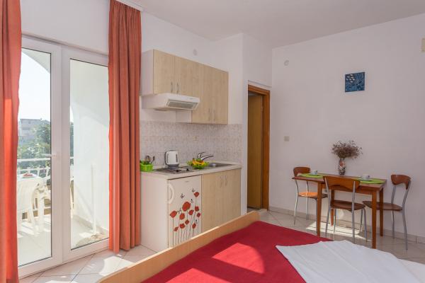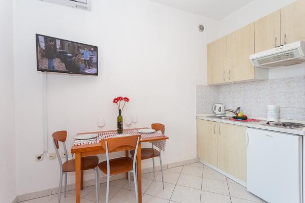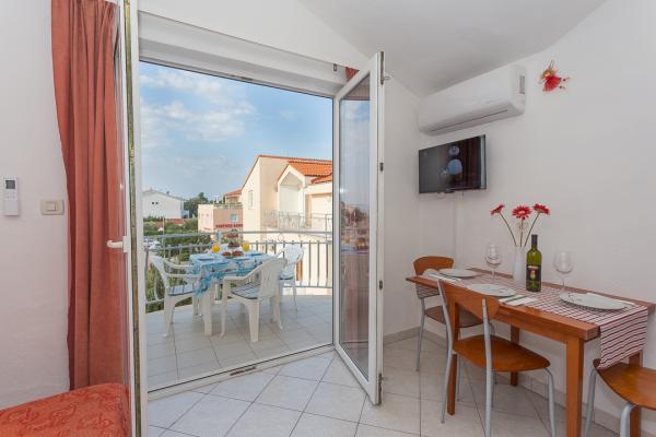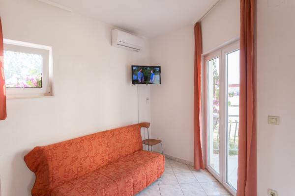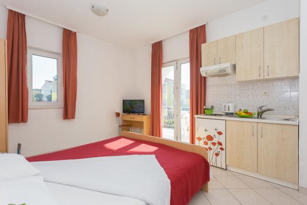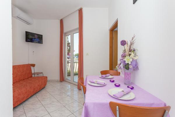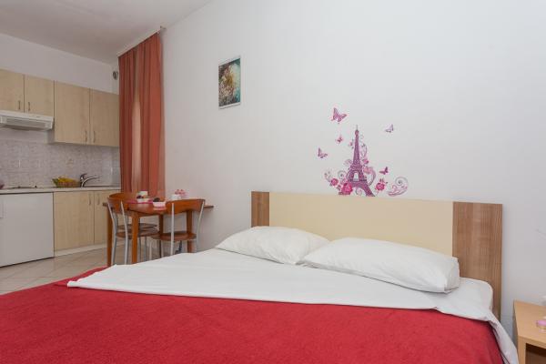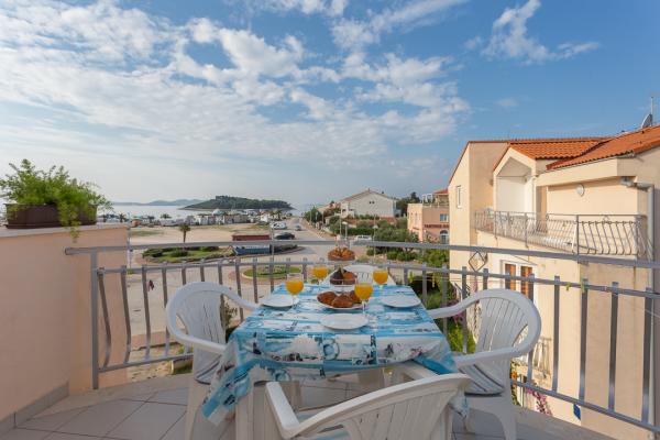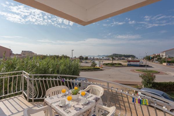 One-bedroom, two-bedroom apartments and studios. In the very center of Pakoštane, right next to the main parking lot. Distance from the beach 70 meters, 10 meters from the bank and shop. Secure parking in front of the apartment. All apartments have a balcony, air conditioning and wi-fi!
