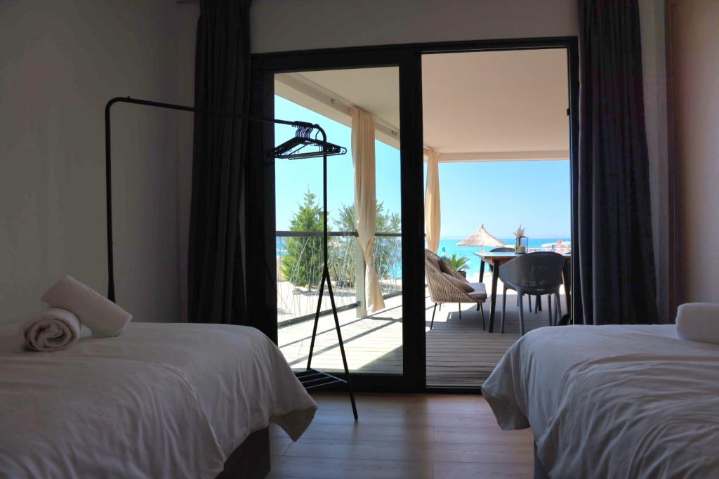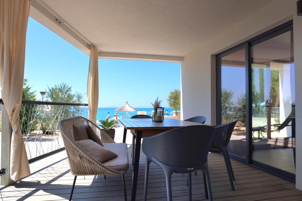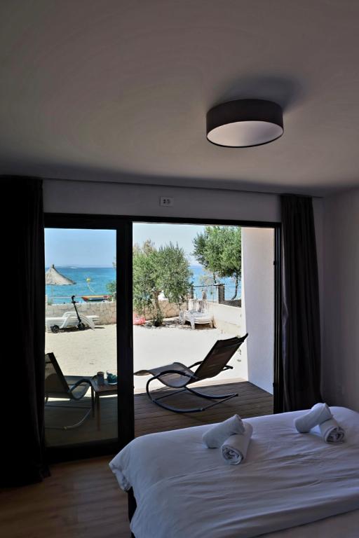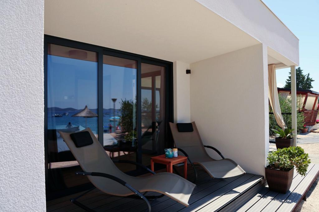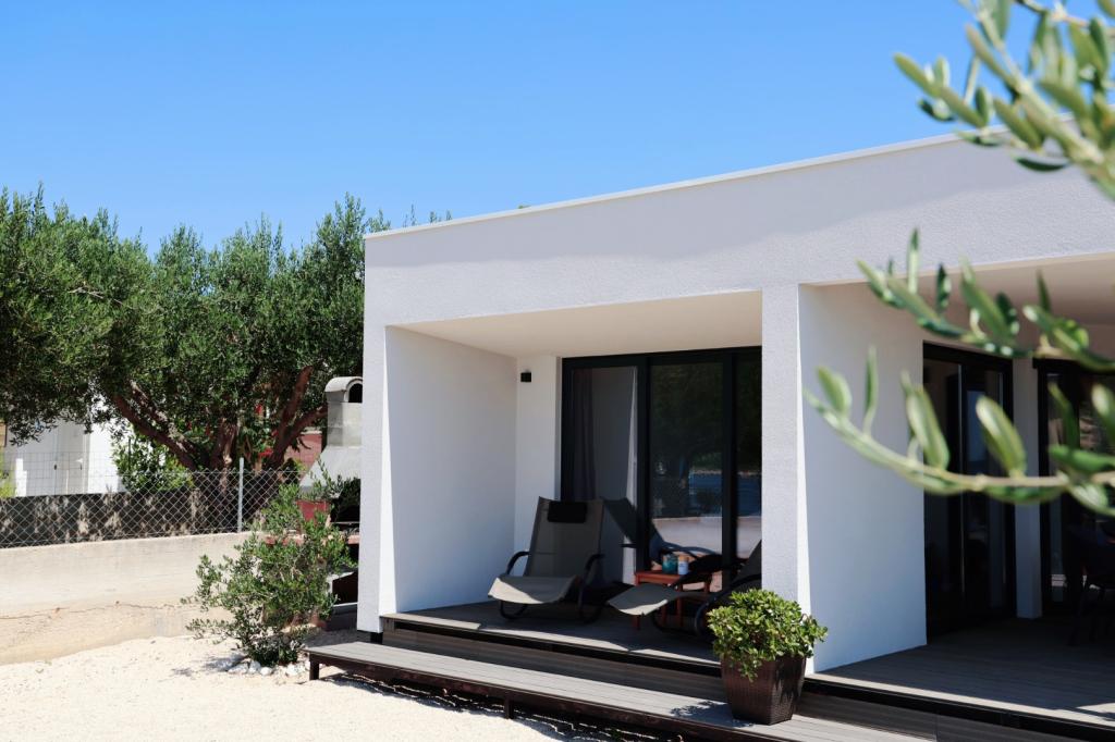There are mobile homes for rent on the beautiful beach. The houses are modern and luxuriously decorated, they consist of a large bedroom with a bathroom, a bedroom, a kitchen, a living room and a bathroom, and a terrace of 20 m2 with a beautiful view of the sea and the nearby islands. The mobile homes are air-conditioned, have TV and internet. The kitchen is fully equipped and includes; electric oven, dishwasher, coffee machine, washing machine, large fridge, kettle, dishes... Bed linen and towels are included. The houses are located in a quiet part of the town, and are 5 minutes' walk from the center.