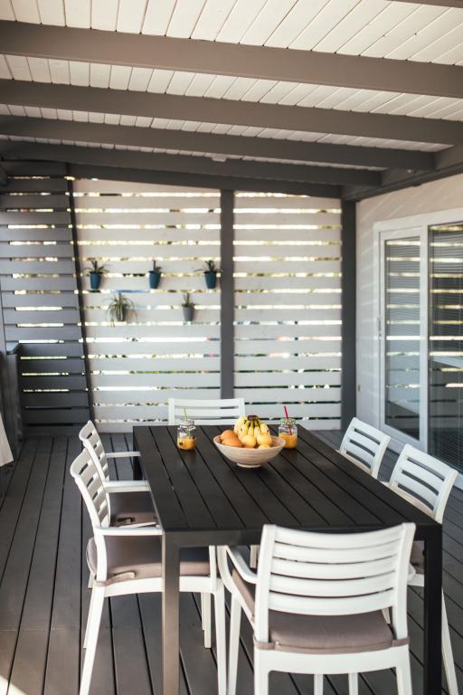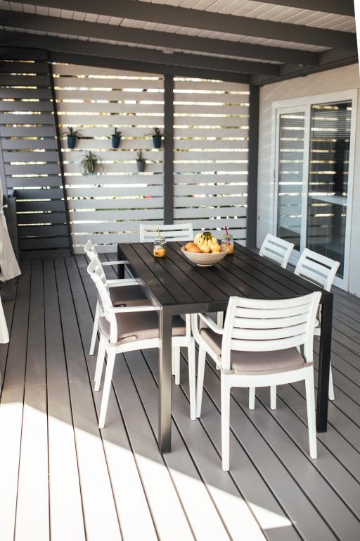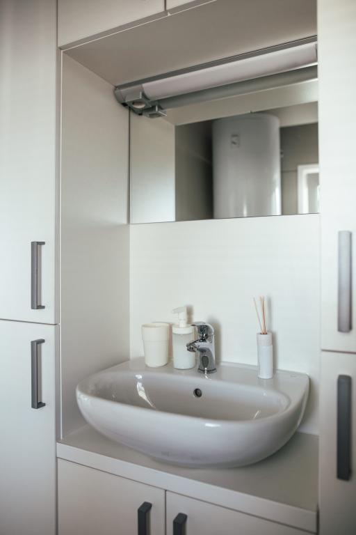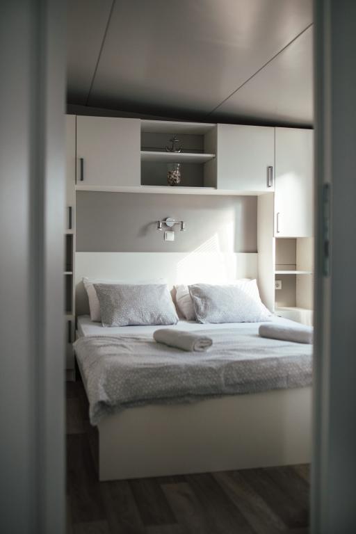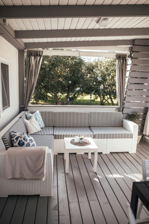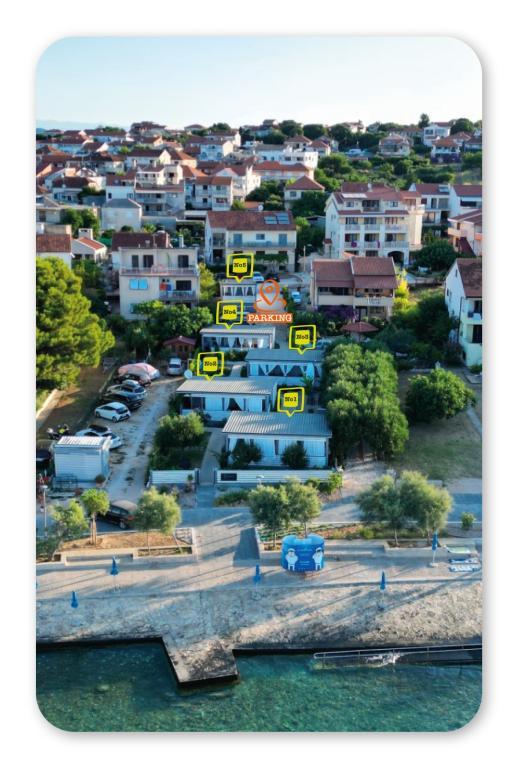 Mobile homes located in the center of Pakoštane, right next to the main sandy beach with direct sea views. The mobile home has two bedrooms, a dining room, a kitchen, a toilet and a large terrace (5). All guests have a grill at their disposal. Guests are provided with a parking space. Pets are allowed but an additional charge of €7/night per pet is charged. We have our own boat mooring and trailer parking, which are available to guests for an additional fee.