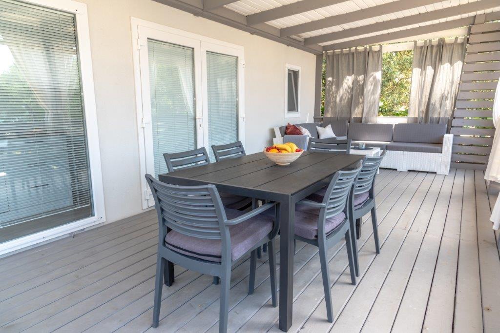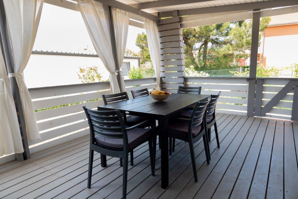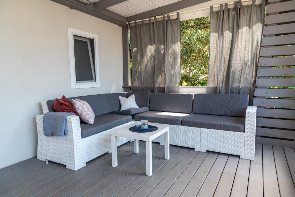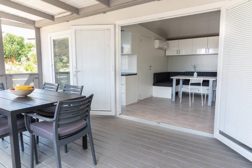 Mobile homes located in the center of Pakoštane, right next to the main sandy beach with direct sea views. The mobile home has two bedrooms, a dining room, a kitchen, a toilet and a large terrace (5). All guests have a grill at their disposal. Guests are provided with a parking space. Pets are allowed but an additional charge of €7/night per pet is charged. We have our own boat mooring and trailer parking, which are available to guests for an additional fee.