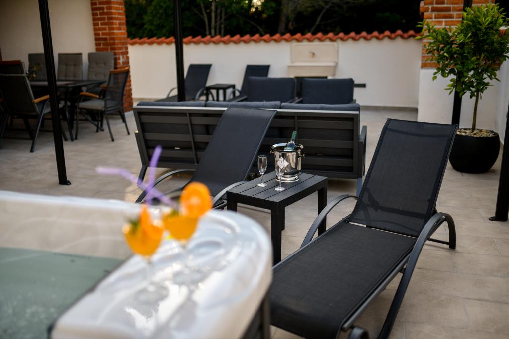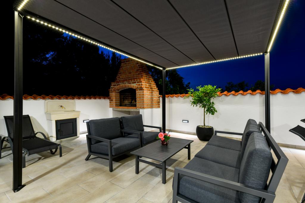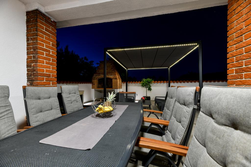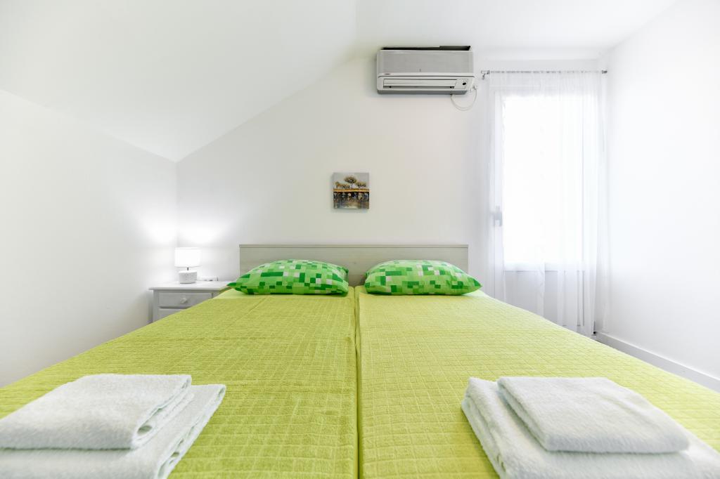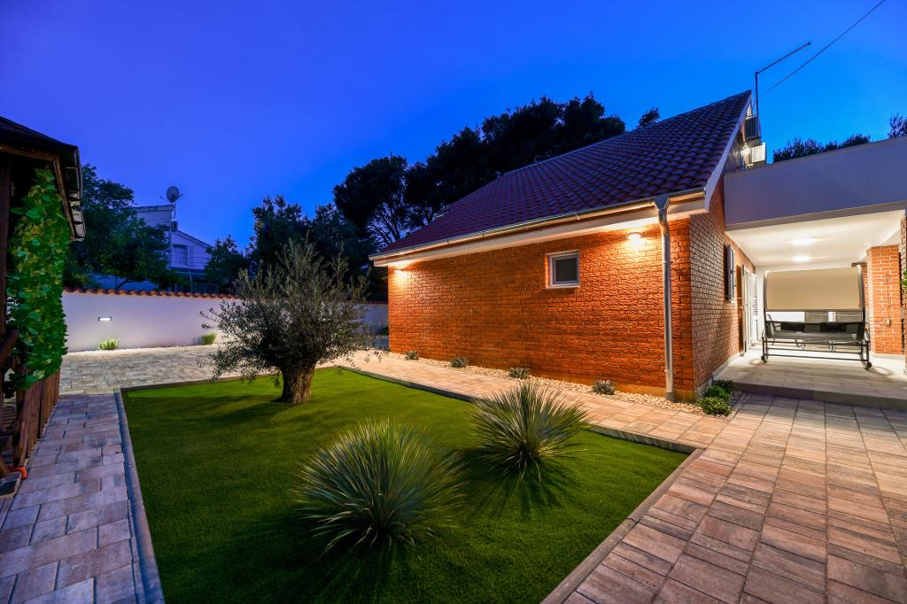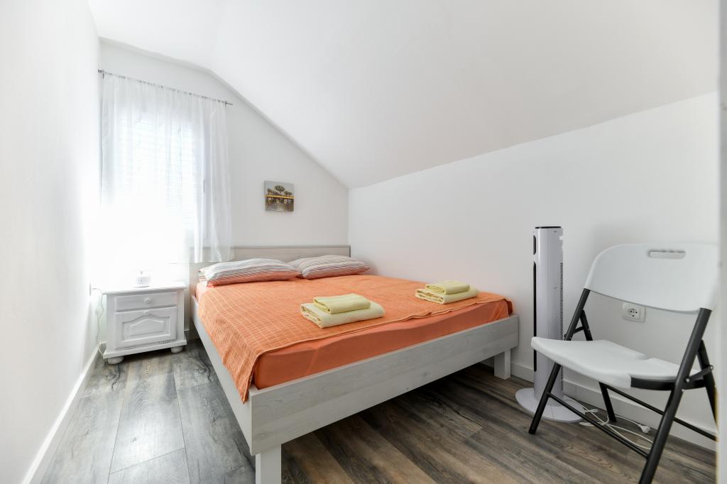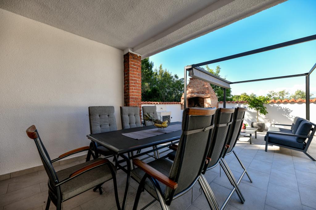 The house is located on the island of Pašman, in an oasis of peace, silence and beauty of a typical small Dalmatian town. Three minutes walk to the beach, five minutes to the store. The facility has a large outdoor terrace, barbecue, deckchairs, a swing for rest and a hydromassage tub. On the ground floor there is a large living room with a kitchen, two bathrooms and three toilets, and a washing machine. There are 4 bedrooms on the first floor, two rooms have access to a large terrace overlooking the sea, a double bed size 180x200, and the other two rooms have a double bed 160x200, and a view of the forest. There is also one toilet on the first floor. A baby cot is available on request. There are three parking spaces in the yard, as well as the possibility of using an outdoor shower. The house was completely renovated in May 2023. A stay of 10 people is also possible, in which case accommodation is provided for two people in a studio apartment on the same plot, with an additional charge. The studio apartment has a kitchen with all appliances, a bathroom with a shower, TV, air conditioning, and a terrace with a view of the sea.