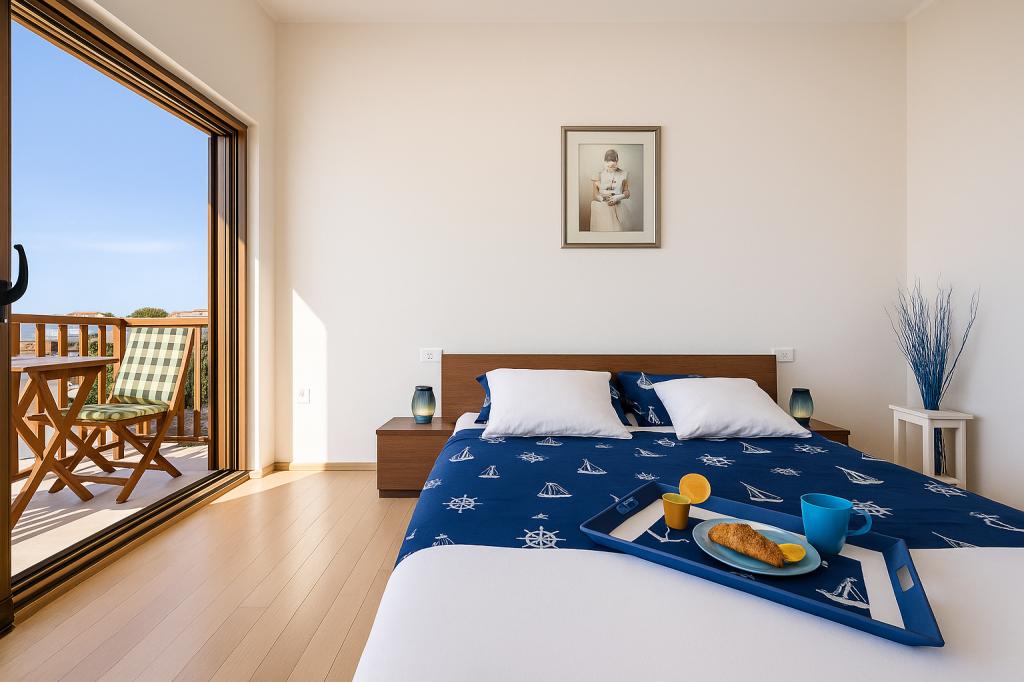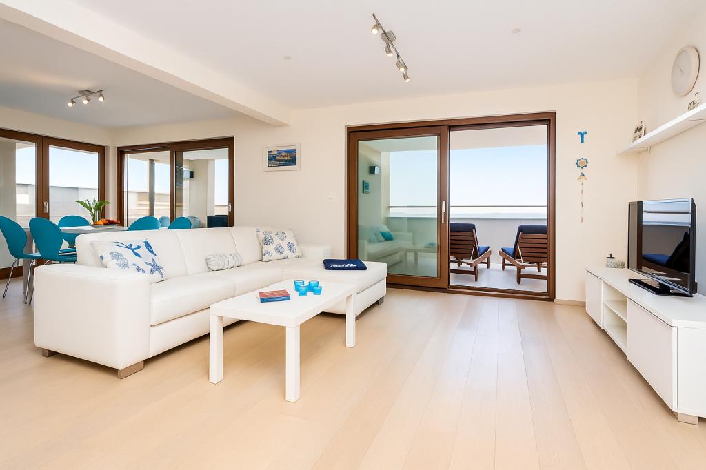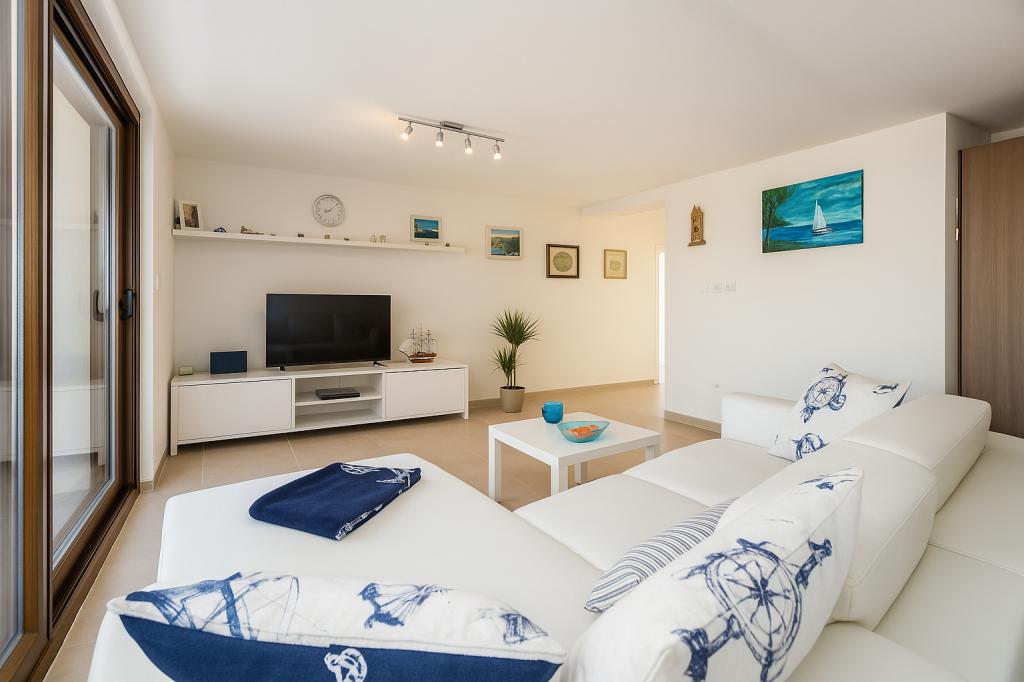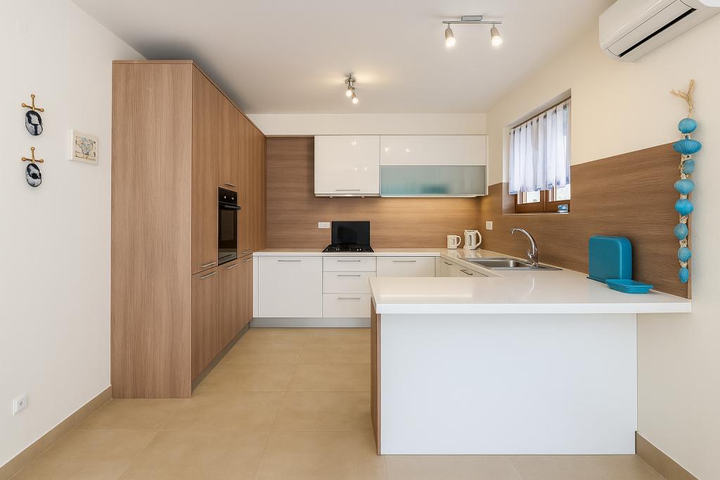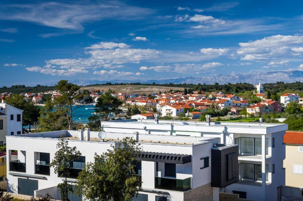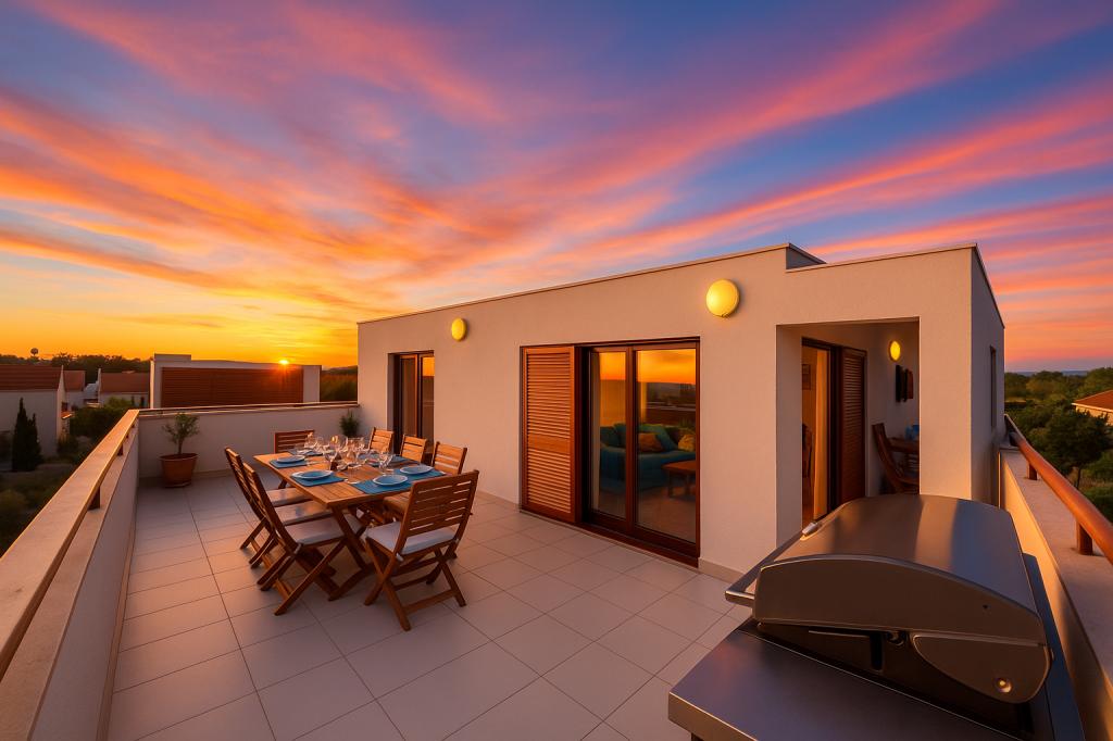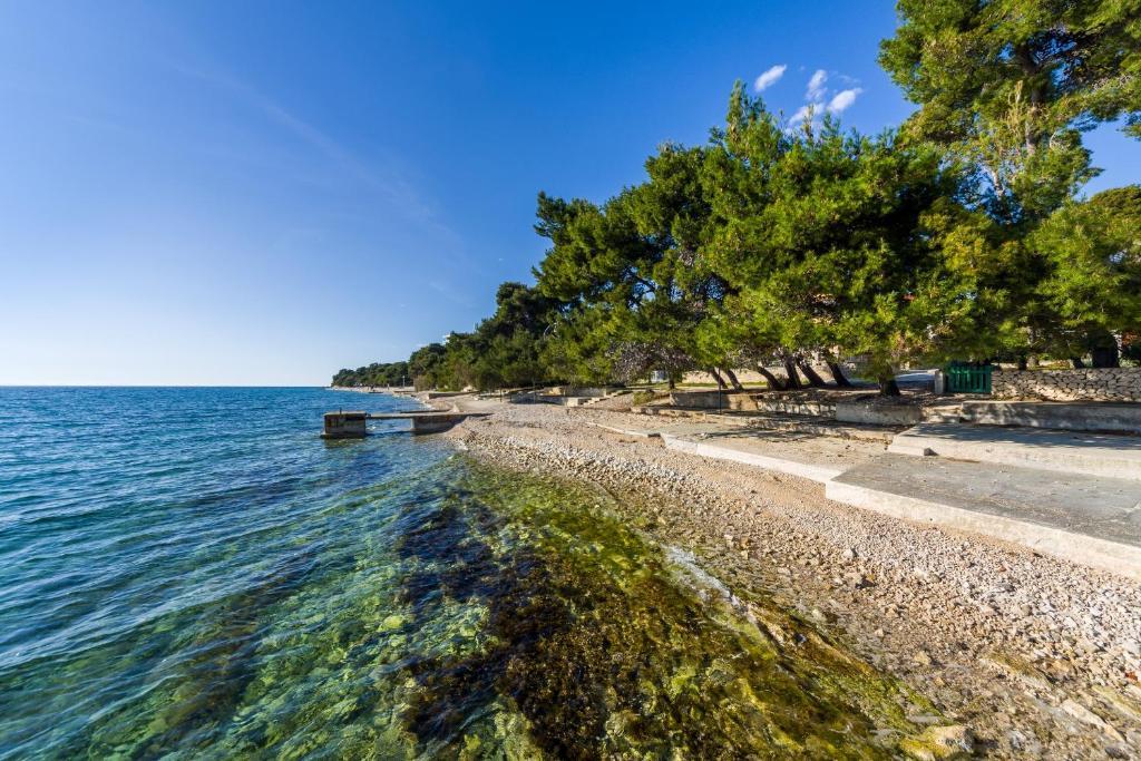 Aquamarine Deluxe Penthouse Apartment is located in Petrčane, just 150 m from Pineta Beach and 250 m from Punta Radman Beach. It features a spacious terrace with partial sea view, a BBQ, free WiFi, and private parking. The apartment includes 3 bedrooms, a modern bathroom, a living room with a sofa and flat-screen satellite TV, and a fully equipped kitchen with a dining area, towels, and bed linen. Only 200 m from Petrčane bus stop and 23 km from Zadar Airport (airport transfer available at an extra charge). Perfect for families or groups of up to 6 guests seeking comfortable and stylish seaside accommodation.