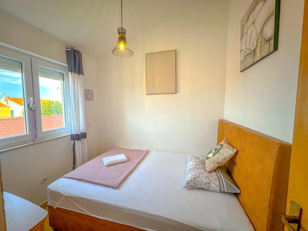 APARTMENT SARA - PUNTA SKALA /PETRČANE is new and beautifully decorated, and consists of an entrance hall, two bedrooms, a living room with a kitchen, a bathroom and a balcony with a view of the sea. The apartment is on the 1st floor of the building. APARTMENT MARINA-PUNTA SKALA/PETRČANE is a cozy apartment on the ground floor of the building, consisting of an entrance hall, two bedrooms, living room with kitchen, bathroom and balcony. Both apartments are fully equipped for a pleasant stay. Parking is provided. The nearest shop, restaurant, bakery and pastry shop are about 100m from the apartment. The beach with swimming pools is approx. 200 meters away from the apartment, and there is plenty of greenery, so you can always find shade that allows you to stay on the beach for a longer time. There is a long promenade by the sea that you can use to reach Petrčane. The apartments are 12 km from the city of Zadar and 3 km from the historic city of Nin. Apartments Sara and Marina are ideal for a quiet family vacation, yet they also offer opportunities for excursions and outings. We are looking forward to your arrival!