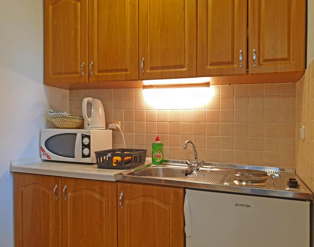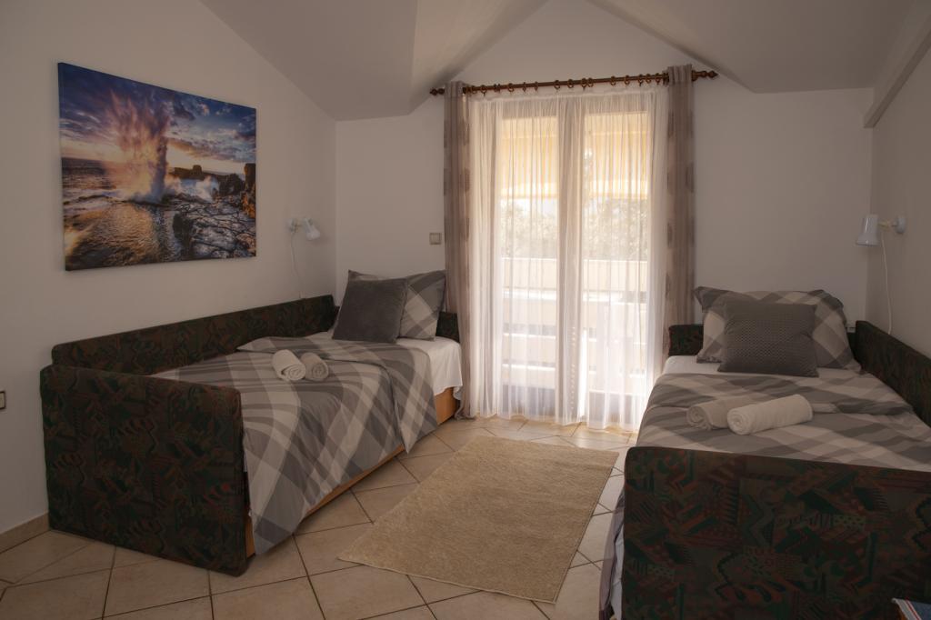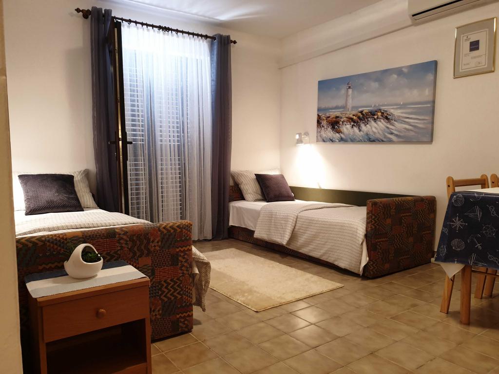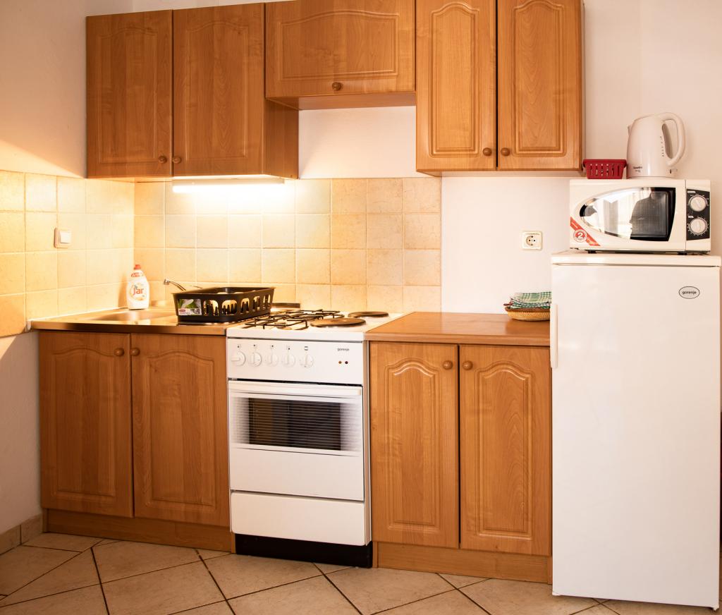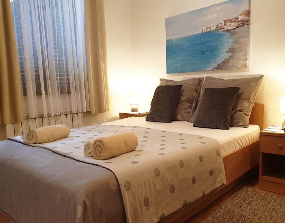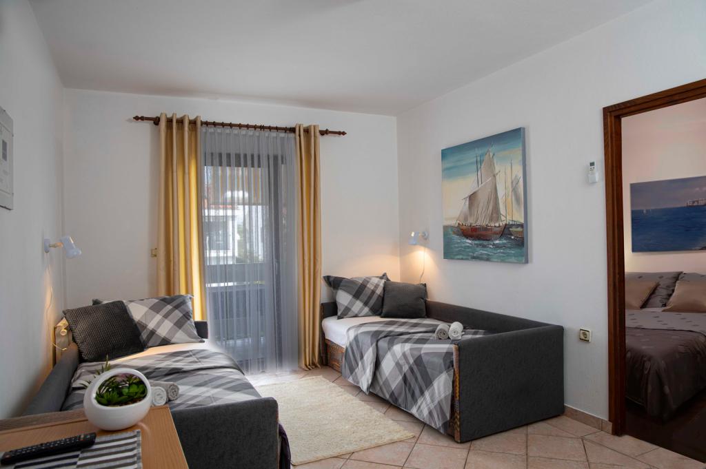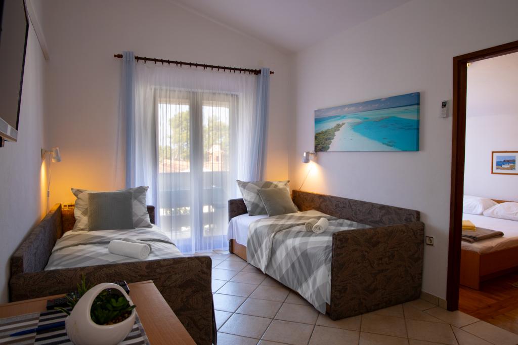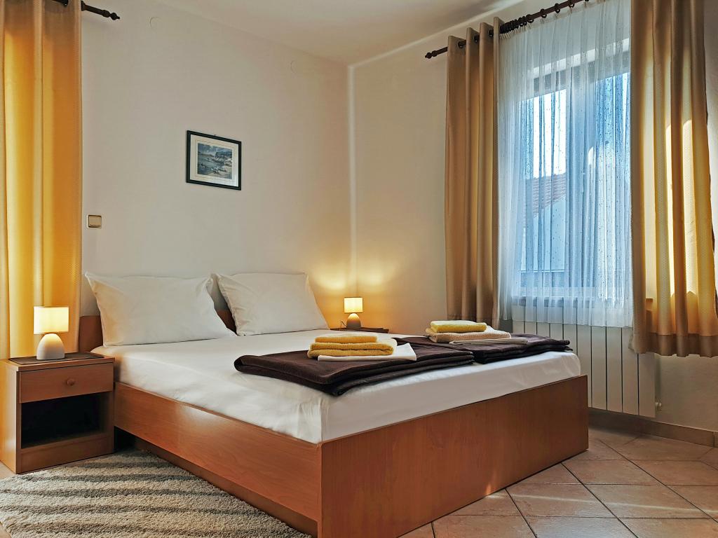 The apartments are neat and clean and equipped with everything you need for a short or long stay. The owner is friendly, approachable and willing to help with everything. The beaches are literally at your fingertips, a minute's walk (with a small child) whichever way you go. You can almost always find a cooler, and for children there is also a fine sandy beach with a shallow sea where there are places at any time of the day. The place has enough cafes, restaurants, pizzerias, gift shops... A car is literally unnecessary (and you can leave it in the reserved parking lot in the shade next to the apartment) because everything is within a few minutes' walk. Any recommendation for an apartment.