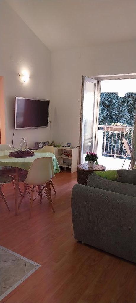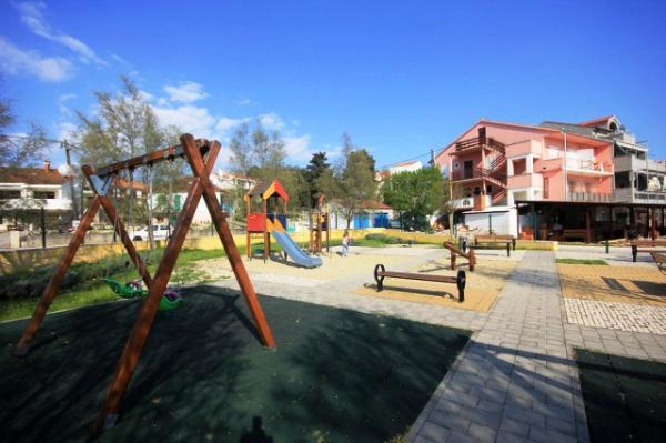 The apartments are located in a new family house in the center of Petrcan. Below the house there is a beautifully landscaped children's playground, promenade and harbor with boats. Nearby there are beaches, restaurants, shops. The apartments have covered balconies overlooking the sea and islands. They are comfortable, with two bedrooms, living room with kitchen, bathroom. The apartments are air conditioned, with wi fi internet, microwave, kettle, coffee maker and cutlery and drinks. They are equipped with bed linen and towels.