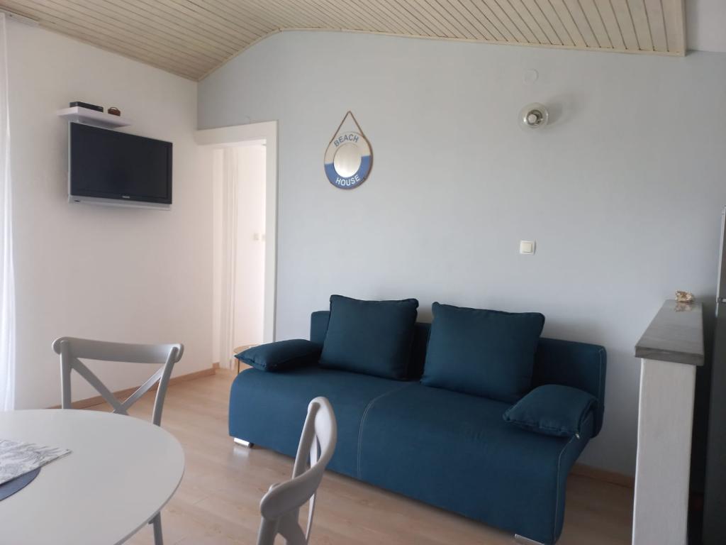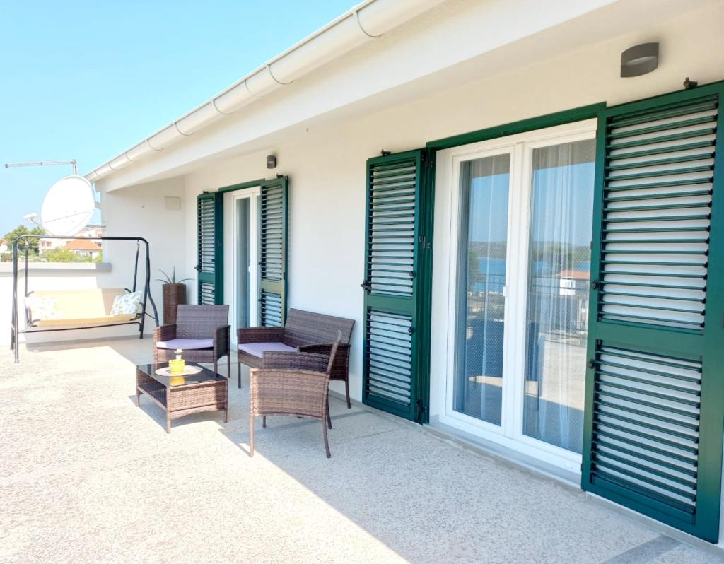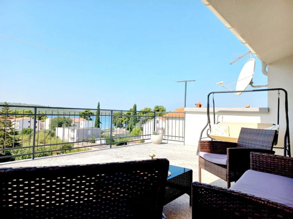 The advantages of the accommodation we offer include: the only apartment in the attic of a family house, a large balcony with a sea view, proximity to the main beach Lolić (a family beach with a pine forest - shade, rich amenities), proximity to a grocery store (across the road :), distance from the town center (10 min walk, close enough and far enough for a pleasant and peaceful sleep), cleanliness and care for the accommodation, house and environment. We will be happy to offer you homemade products because agriculture is our family tradition. The place where we live is ideal for a summer vacation (well visited, rich cultural and entertainment program, clean beaches, amenities for families, young and old). Welcome!