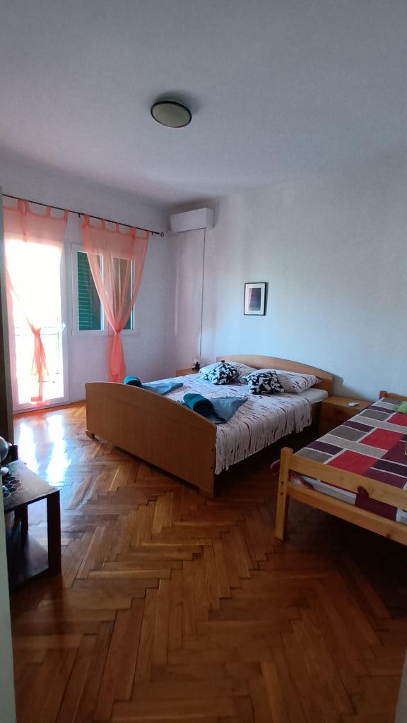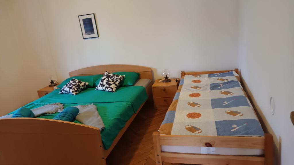 Spacious apartment, on the 1st floor, two bedrooms, each with three beds (double bed and single bed), kitchen, living room, toilet, bathroom, balcony. Air conditioning in both bedrooms, satellite TV, parking, grill, wifi, close to the beach. It is located in a quiet part of Pirovac, 5-10 minutes walk to the center and less than 5 minutes to the beach Lolić.