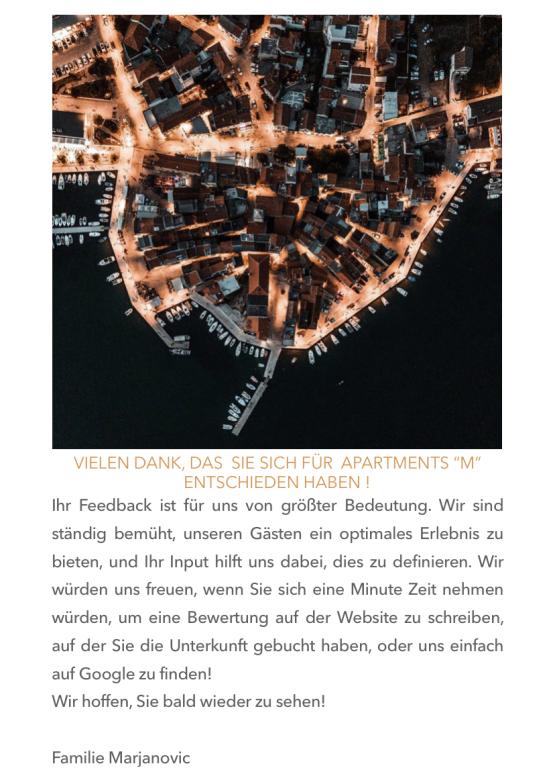 Dear Tina, thank you very much for your kind words. It was our pleasure to host you and Mr. Tihomir. We look forward to meeting you again :-) Until then a lot of greetings! Julia, Apartments M