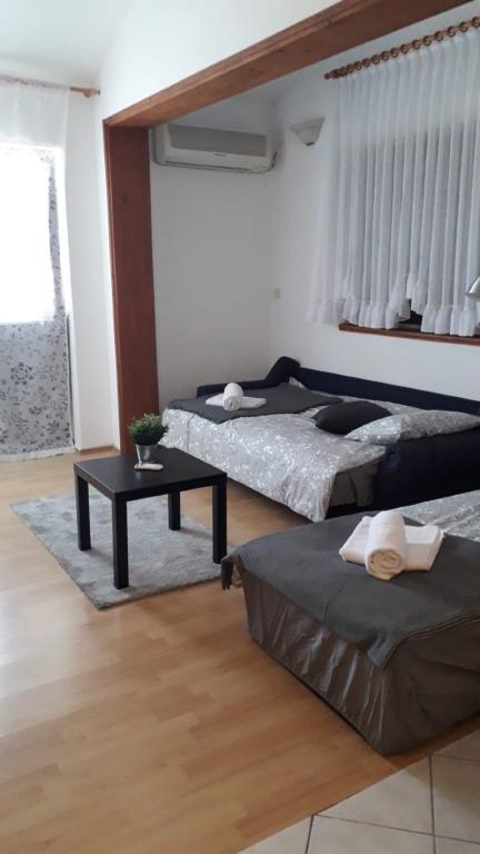 2 apartments for rent in Pirovac. They are located near a beautiful pine forest about 900m from the center and the beach. There is no big fluctuation of people, because only 2 apartments are rented. Ideal location for these times. Each apartment has its own terrace, air conditioning, TV, parking, internet, bed linen and everything you need for a holiday. The location is quiet and is an ideal place to relax, and the center is a ten minute walk away